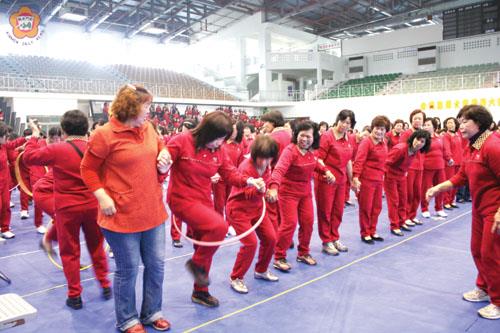 金門縣婦女會昨日假縣立體育館舉辦「金門縣婦女會九十九年會員聯誼暨慶祝婦女節活動」,並精心安排了趣味競賽,吸引八百多位婦女姊妹熱情參與,現場充滿歡樂的氣氛,在緊張充滿趣味性的競賽中,展現了團隊精神,歡度愉快的假日。 昨日進行的趣味競賽中,縣婦女會精心設計了百發百中、魚躍龍門、時代巨輪等三項兼具趣味與運動「笑」果的項目,由各鄉鎮婦女分會組成七支隊伍參加,以計時賽分出名次,也讓婦女姊妹更有參與感。 其中,「百發百中」活動,在場中分別定出AB兩定點相距6公尺,每隊20人,在A定點就位,籃子放在B定點。每隊第一人拿著籃球,哨聲吹起時,將籃球投入籃子,如未投入繼續投,投到投入時再交給第二人,依此類推至最後一位。 「魚躍龍門」活動場中分別定點,每隊20人手牽手成直線定點待命。每隊第一人先用呼啦園套在身體上,比賽哨聲吹起時由第一人身體將呼啦圈套出給第二人,兩人的手不能鬆開,依此類推至最後一位。 「時代巨輪」則於活動場中分別定出AB兩定點相距30公尺,每隊20人,每隊分AB兩小隊(各10人)分立於AB定點待命,A點10人先將圓形帆布撐起,人站其中以滾輪方式前進,到B點後換B點的人,以同樣方式走回A點,依法類推至最後一位。 昨日的趣味運動賽雖以趣味為重,但求好心切的每位參賽的婦女朋友也是全力以赴,爭取好成績,展現了團隊精神,現場也充滿了趣味的笑聲與掌聲,不論是旁觀者或與賽者,都感受喜悅的氣氛。 三項競賽總成績,第一名金湖分會、獎金二千五百元;第二名金沙分會B隊,二千元;第三名金城分會B隊、獎金一千五百元。而第四名金城分會A隊、第五名金沙分會A隊、第六名烈嶼分會、第七名金寧分會等四隊各頒優勝獎金各一千元。