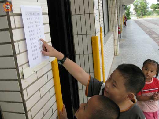 尋名姓,認校舍;學之初,先註冊! 昨天是註冊日,金沙國小小一新生在名單上尋找自己的名字,確認就讀的班級。 對於新生家長,學校提醒他們:讓孩子熟悉環境。給孩子適當的鼓勵與讚美。多和老師溝通。養成孩子良好作息習慣。父母不要事事為孩子代勞。發現孩子學習遲緩時,不要苛責,應先了解原因,再給予輔導。