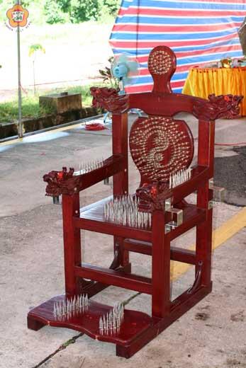 哇!這是什麼人的坐椅?答案可是「神座」喔! 初次乍見這張坐椅,到處都是尖銳的釘子,平常人坐上去恐怕要遍體鱗傷,但信眾口中的仙佛可是不會如坐針氈,倒是坐鎮普渡場合,很多信眾還是頭一回見著呢!