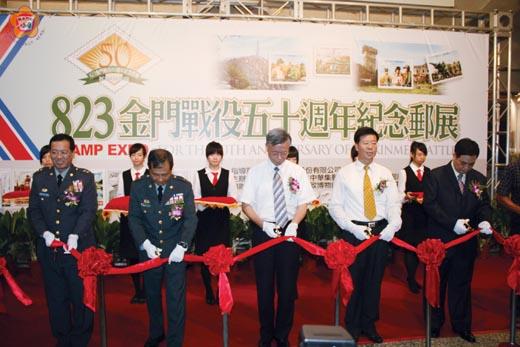 八二三金門戰役五十週年紀念郵展,昨日上午在縣長李炷烽、中華郵政董事長吳民佑、金防部指揮官陸小榮中將、國防部常務次長黃奕炳等人剪綵後揭開為期二天的展出,展出砲戰期間軍郵家書往來、有關金門地區的郵票等,讓軍民重溫「烽火連三月、家書抵萬金」的歷史。 昨日上午假縣立體育館展出的八二三金門戰役五十週年紀念郵展在北門社區醒獅隊熱鬧開場下正式展開,包括中華郵政董事長吳民佑、金門縣長李炷烽與夫人吳麗鳳、金防部指揮官陸小榮中將、國防部常務次長黃奕炳中將、總政戰局副局長鄭瑞堅少將、金防部政戰主任黃慶靈、中華集郵團體聯合會理事長黃明芳、台北郵局蘇建忠經理、及縣府主管與地區愛郵人士與學生等到場參加。 郵展在吳民佑董事長、金門縣長李炷烽、金防部指揮官陸小榮、國防部常務次長黃奕炳等人,及在八二三砲戰期間,任職金門軍郵局冒險在火線送家書為軍民帶來精神糧食,獲頒光華乙種二等獎章的退休郵務士董國忠等貴賓共同剪綵後正式揭展。 吳民佑指出,此次郵展展出內容以823砲戰期間軍郵家書往來及有關金門地區郵票,除了提供軍民緬懷八二三歲月、軍郵精神的歷史,也希望將郵政融入社區,並提倡集郵風氣。 李炷烽表示,一方郵票無限世界、一次展覽無比深情,一段回憶有一段的感恩,中華郵政集郵協會,特別是台北郵局配合八二三金門戰役五十週年紀念日舉辦此一郵展,充滿無限歡迎與感謝。 他也提到,此次郵展剪綵典禮,特別邀請董國忠舅舅到場參與,令人感到窩心,他也回憶在八二三年代,年幼的他,有一天一位綠衣使者來到他家而嚇一跳,由於郵政人員與軍人衣服同樣是綠色的,年幼的他難以辨認,進屋一看才知道是舅舅,李炷烽說,他舅舅也姓董,也是早期郵政員工,他一路走來,能順利求學,舅舅給了很多支助,謝謝舅舅之外,還要謝謝郵局,謝謝中華郵政,因為中華郵政提供舅舅工作的機會,才有餘力幫助他的外甥(李炷烽),所以對郵政由衷感謝,也無比的感恩。 李炷烽也表示,中華郵政公司這幾年在金門舉辦的郵展,帶給金門鄉親很多的啟發,八二三金門戰役五十週年紀念活動更是積極參與,讓人覺得非常感動,而金門很多題材可以作為中華郵政發行紀念郵票的對象,特別是金門曾經是兩岸分裂的起點,希望在古寧頭六十週年能成為兩岸重新開始的開端,縣府也向交通部中華郵政提出這樣的請求,希望能舉行古寧頭六十週年郵票展,相信他們會滿足地方的期待。 中華集郵團體聯合會理事長黃明芳指出,八二三期間軍民浴血保衛國土,犧牲生命鞏固金馬台澎,從此次郵展中可以找到蛛絲馬跡,也見證金門為國家貢獻付出的史實。 此次郵展展出內容為「八二三」砲戰期間軍郵往來實寄封,及有關金門地區的莒光樓、八二三砲戰、風獅爺、金門國家公園等紀念郵票,總共有四十八框::等。昨日縣長李炷烽等貴賓也在黃明芳的引領介紹下,參觀了各項展示。 另為使郵展靜態的展出增添生動活潑,昨日於開幕前及活動期間也邀請社區與學校社團表演有氧舞蹈、太極劍、太極扇、金門農工樂儀旗隊、北門里絲竹樂、國樂、管樂::等,以共襄盛舉。而在郵展現場並設有臨時郵局,備有八二三金門戰役紀念信封,現場交寄者除可加蓋極具珍藏價值的臨時郵局戳外,並可以參加抽獎。 在展場臨時郵局備有823金門戰役紀念信封,現場交寄者除可加蓋極具珍藏價值之臨時郵局戳外,並可以參加抽獎,獎品有800元、500元及200元的贈品兌換券,可持券於本年十月三十一日前至臺北北門郵局或金門地區各郵局兌換喜愛的郵政代售商品。 金門郵局表示,本次郵展內容充實,獎品豐富,活動時間為上午十時至下午五時,歡迎大家把握最後一天的展期,踴躍前往參觀。