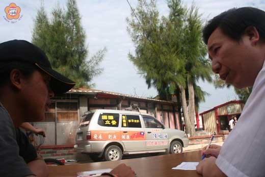 「擺攤立委」陳福海昨天由金沙鎮開始,展開他的巡迴擺攤服務。立法院會期已於七月十八日結束,到下一會期開始前,約有四十天的時間,金門區域立委陳福海決定用擺攤的方式,親近民意。 陳福海擺攤的方式,就是開著「豐田瑞獅」(ZACE-SURF)廂型車,載著桌椅,到各地擺攤,藉以聽取民意或接受陳情。他的團員包括徐鴻義、黃秀珍、王石堆……等。 廂型車的第一扇車門上貼著:「立法委員陳福海向您問好」;第二扇車窗及車門貼著:「與您有約」、「走透透」;第三扇車窗上貼著「擺攤立委」;車尾的側面到第二扇車門上貼著「發展·創新·傾聽」及三面青白紅國旗;車屁股上的後車窗則貼上一面國旗及「金門蛻變夢想實現」。 陳福海的擺攤行程第一站是金沙鎮位在沙美車站和衛生所之間的「長壽亭」;這一帶人來人往,是攤商聚集的地帶。 陳福海團隊及他本人於早上七點半陸續抵達,攤位則於八點擺開,頭幾宗案子,都與土地有關。在七點半之前,已有人因為土地被自來水廠侵佔,向幕僚人員投訴。 對於各項陳情案或建議,陳福海除了要求幕僚人員列管追蹤外,還請民眾提供書面資料。這項擺攤服務,接下來還會巡迴各村里。 昨天受理的案件計有二十二件。包括青嶼居民住家旁水溝被軍方挖為戰溝未填平案、士官長正規班「T評」不公案(母為子陳情)、協助辦理大陸新娘來金案、軍佔民地案、申辦外勞案(子為母陳情)、請求用擔架搭乘軍機c130返金案(媳婦為婆婆陳情)、榮民就養案。