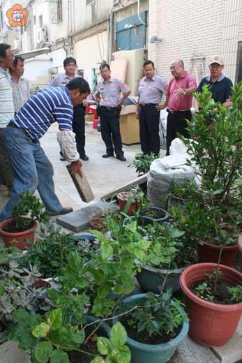 山外街四十五號門前的「既成道路」被地主用盆栽阻絕,造成「一夫當關,萬夫莫開」;也成了里長口中的「路霸」;金湖鎮長李成義昨天親臨現場,帶了警察,也帶了消防人員和環保清潔人員,但並沒有強制遷移,而是藉由道德勸說,讓地主自行搬移。地主對「路霸」之稱,表示不能接受。 對於既成道路被地主「一夫當關,萬夫莫開」的問題,李成義認為不應該以個案看待,希望金門縣政府對類似問題,能有通案處理的模式。 在前天的九十七年金湖鎮年中檢討會中,山外里里長陳晚開要求金湖鎮公所動用公權力,處理這一宗「既成道路」被阻絕的問題。 李成義在會中裁斷,要由自己帶人去搬花盆。消息見報後,地主陳銘助一大早就打電話向李成義反嗆。 原本環保課在昨天八點半以前,就要帶隊前往,但為了讓事情更周延,李成義先與里長陳晚開、環保課長陳永要、建設課長張瑞心,以及所內具有法律專長的幕僚人員開會討論。 根據幕僚給的意見:大眾利益大於私人利益!只要道路上有公共安全、消防、交通上的危險,就可以由主管單位出面取締。由於主管單位是警察局和消防局,取締行動還是少不了警察或消防人員,因此李成義還是把金湖警察所所長王明宏及金湖消防分隊隊長陳莒揚請到;各路人馬各自在陳銘助的門前會合。 李成義好說歹說,希望陳銘助能夠把花盆移開,以免害鄰居受傷或是影響災害搶救,但陳銘助似乎無動於衷,堅持地是他的,而且有繳稅。他說:「看別人怎麼樣,我跟他一樣。」他的意思是,附近有違章建築,為什麼鎮公所不去管他們。不過,李成義一到現場,就已派人拍照,準備把違規的部分,一一查報。 李成義希望陳銘助要有公德心,要有慈善心,說到口乾舌燥,幾次也曾希望湖警或消防分隊直接開罰單。不過,金湖警察所所長王明宏仍不放棄溝通。 陳銘助面對眾人的車輪戰,玩了個「朝三暮四」的手法。他嘴裡說著「要搬就搬」,結果是把橫的搬成直的-也就是從橫擋斷路變成縱阻街心。不過,陳銘助的太太已有被說服的傾向,反過來勸解自己的丈夫。 鬧了快一個小時,李成義決定讓王明宏繼續與陳銘助周旋。王明宏企圖讓陳銘助知道,阻路若造成別人的意外,會有法律責任;希望「親戚莫計較,厝邊莫計較」。陳銘助說他不是計較,而是氣不過「好人被說成壞人」。 最後,雙方各讓一步,陳銘助同意將花盆移到街道兩旁,王明宏則表示下午再去檢視搬移的情況是否合乎安全。 陳銘助雖然同意把花盆調整,但仍然不許自來水管的汰換工程從他的土地經過;如此一來,金湖鎮公所投資三千多萬元的山外村道路整建,能不能及於這裡,還是得「走著瞧」! 李成義表示,像山外街這一起既成道路為私有土地的情況,只是社會現象的一個縮影,一定還會在別的地方出現。他希望金門縣政府對於這種情況,能有共同的解釋(統一或通案的處理模式),看看是要強制徵收或是以地易地。