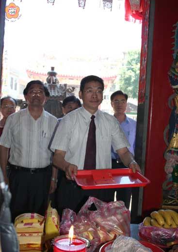 金城鎮西門里「外武廟」慶祝韓府王爺千秋聖誕,自三日起一連二天舉行作醮慶典,廟內外熱鬧非常,包括縣長李炷烽、議長謝宜璋都前往上香祝禱,並敬獻爐敬金,祈求福佑浯島風調雨順,合境平安。 農曆六月初二為金城鎮西門里外武廟韓府王爺壽誕,每年農曆六月初一與初二兩天,西門里社區都會以作醮活動來慶賀西門境主韓府王爺聖誕。外武廟管理委員會三日(農曆六月一日)起一連兩天舉行建醮酬神,社區長老及信眾們積極投入這項廟慶活動。 昨日上午十一時三十分許,縣議會議長謝宜璋在秘書長張忠民及議會各組室主管的陪同下到外武廟拈香祝禱,並敬獻爐敬金,祈祝庇佑國泰民安,地方安寧。 而縣長李炷烽則在昨日下午率同機要秘書許加發、局長李增財等人前往拈香祝賀韓王爺聖誕千秋,敬獻爐敬,祈求福佑浯島風調雨順,合境平安。 適逢韓王爺聖誕,境內善信也準備豐盛的祭品前往拜拜祈求庇佑、賜福;各家戶也犒軍、拜門口,顯示韓府王爺在民間信仰深入人心,許多行經的台灣觀光客也入廟虔誠地上香膜拜,更添熱鬧氣氛。 西門里外武廟管理委員會主任委員李水泉指出,今(農曆六月初三)日外武廟將開始採新乩(乩童),至找到新的乩童為止,期間正沖生肖為屬蛇、屬兔,請該生肖的民眾能迴避,而境內家戶也能於門前擺設香案犒軍。 外武廟又名馬舍宮,位於金城鎮西門里光前路,自明、清以來奉祀主神為關聖帝君、韓王爺,其中,韓王爺為西門境守護神,消災化厄、驅邪治病、保境安民,善於捉拿竊盜,寺廟香火鼎盛。 外武廟自民國以來已兩度重修,民國五十年因拓寬馬路,往後移動重建,七十一年則因蟲蠹重建,歷經二十年後,又因建材腐蝕,幾有陷塌之虞,因此,在民國九十一年八月又動土鳩工重建,歷時一年半完成。廟貌外觀以傳統廟宇格局為範,結構體採鋼筋水泥混凝土構成,鏡面輔以石雕龍柱及戲齣人物、花草、龍、獸等為飾,充分展現精緻典雅的建築風格。