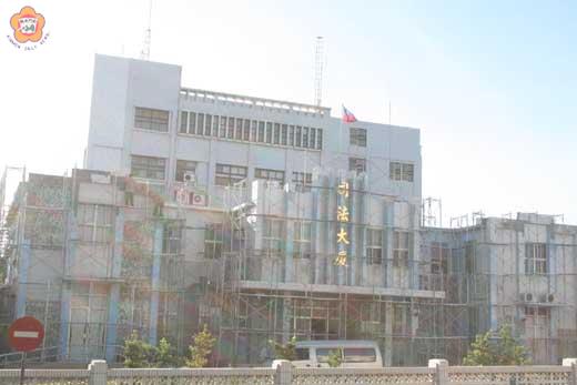 整修門面啦! 院檢合署辦公的「司法大廈」,最近正在大肆整修「門面」。 架起的鷹架,工人賣力在牆壁鑽探,只為過不久又將「耳目一新」了。