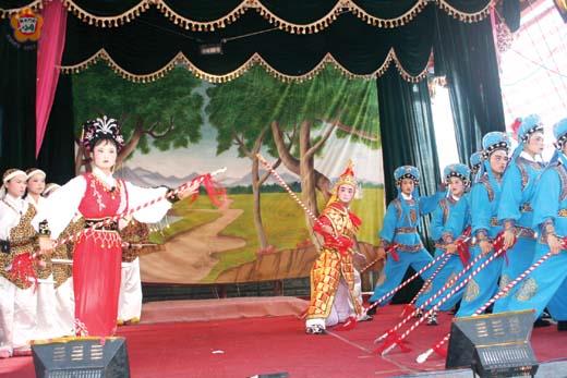 為歡慶古地城隍爺六百二十一週年聖誕千秋暨遶境巡安慶典,金門城社區昨日起至二十日一連舉行三天作醮慶祝活動,社區總動員以辦喜事的心情投入廟慶活動,四處張燈結綵,顯得熱鬧非常,應邀來金公演的廈門翔安民間戲曲學校高甲戲實驗戲團在廟前戲臺演出精彩的酬神戲碼,不僅博得滿堂彩,也為古地城隍聖誕慶典夜晚掀起另一波的熱潮。 金門城古地城隍廟慈善會理事長陳世宗表示,香火鼎盛傳承六百多年的金門城古地城隍廟,始建於明洪武二十年,是金門地區最早之城隍爺,今日后浦之城隍爺乃是其分身,於清康熙年間遷治。連日來社區總動員以辦喜事的心情積極投入參與準備工作,而各地善男信女也準備牲禮素果到廟拜拜、添緣,廟內香煙繚繞,四處張燈結綵,顯得熱鬧非常。古地城隍聖誕慶典活動壓軸將於明(廿)日舉行,恭請福建省政府主席薛香川、縣長李炷烽主持祭典,隨後在下午三時迎請城隍爺起駕會同各境十二尊王爺繞境巡安,將使慶典活動達到最高潮。 為增添慶典活動的喜慶氣氛,金門城社區也特別邀請由副校長洪慶水率團的廈門翔安民間戲曲學校高甲戲實驗戲團來金展開一連四天七場的公演,十七日晚間演出「楊門巧媳」,昨日下午演出「太白山」戲碼,劇情大意是宋朝太子趙子雲被妖魔鬼怪捉去,妖魔並強迫趙子雲和鬼怪成親,否則要將其殺害,趙子雲不從。事情被天上觀音娘娘得知,隨即派遣其徒弟前往救駕,可是其徒弟被妖女姿色迷惑引來殺身之禍,最後又派遣天兵天將將其收服,救回太子趙子雲。晚間演出「真假御妹」戲碼,吸引地區各鄉鎮的民眾不遠千里熱情到場看戲,有的阿公阿婆更在子孫或親人的陪同下到場觀賞,廣場中熱鬧的人潮與廟中及戲臺上的鼓樂聲將慶典的熱鬧氣氛渲染至最高點。今(十九)日下午演出「丁山下山」;晚間演出「龍爭鳳鬥(上)」。六月二十日,下午演出「竇仙童招親」;晚間演出「龍爭鳳鬥(下)」等膾炙人口的傳統高甲大戲,希望對地方傳統戲曲充滿懷舊的同好們,可不要錯過了這難得的機會,相招來看戲。 陳世宗理事長也誠懇地邀請關心傳統民俗活動人士與善男信女們,農曆五月十七日蒞臨金門城逗鬧熱。