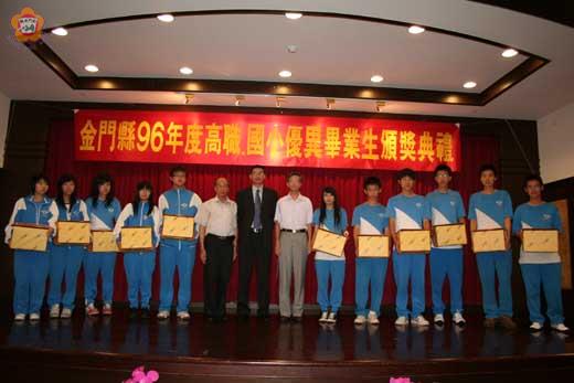縣議會昨日舉辦「金門縣九十六年度高職、國小優異畢業生頒獎典禮」,由議長謝宜璋親自頒獎表揚地區一百四十一位高職與各國小的優秀畢業生,謝宜璋肯定同學在學業上優異的表現,他也期勉同學畢業不是結束,而是另一學習階段的開始,一個真正獨立的人生,即將在眼前展開。 「金門縣九十六年度高中、國小優異畢業生頒獎典禮」於昨日上午九時許舉行,由議長謝宜璋主持,包括秘書長張忠民、縣府教育局長李再杭、督學王任益、議事組主任甯國平、金門高職校長陳水芳與地區各小學校長與老師出席參與。 謝宜璋在致詞時也引述最近熱門轉寄文章,中華民國紅十字總會會長陳長文寫給畢業同學的一封信,饒富意義,當中有提到東西方對「畢業」意思不同,我們所稱的「畢業」一詞,含有結束的意思,意謂著結束了一段學習的過程。但英文畢業典禮叫做commencement,則是「開始」的意思,意謂著即將展開新的人生。 謝宜璋期勉同學畢業不是結束,而是另一學習階段的開始,一個真正獨立的人生,即將在眼前展開。 李再杭表示,畢業是另一階段的開始,他提到,國小畢業直接升國中,是義務教育,也是國民素質的展現;而高職生近年來就學的管道也大增,除了每年有二百三十六位學生可以接受推甄外,金門技術學院也有產學專班,讓不想就業的同學,都有機會再追求學問,最後,他也代表李縣長向畢業生們表達祝賀之意。 與會的國小校長代表、中正國小校長張峰德也代表致詞,強調每位同學都是唯一,也是第一,希望同學都能發揮潛能、長處,思索畢業後所面臨的第二階段,他說,接下來是冗長的暑假,期許同學能好好規劃生活、生命體驗,培養自主管理。他也代表所有校長,期勉同學或許可以輸在起跑點,但一定要贏在終點。 陳水芳也說,此次的活動代表地方與民意對人才培育的重視,他提到,地區資源缺乏,只有人才才可以跟人家相比,期勉同學一時傑出,不代表終身成就;一時失敗,也不代表人生失敗,人生都要持續來努力。 金門縣議會昨日共表揚一百四十一位高職與各國小的各班級優秀畢業生,會後並安排會餐,宴請這些學生與平日勞苦功高的師長們。