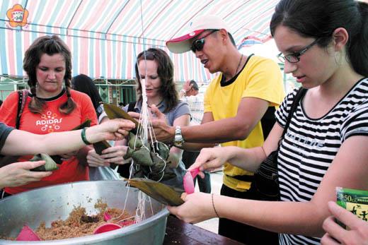 美籍老師美言美語,熱情民眾熱嘴熱心;人客體驗包粽吃粽,地主接待慇慇懃懃|蔡厝暨民享社區今年的端節活動因為有美語老師的加入,顯得更加有趣。 對外籍老師而言,粽子太特別了,無法類比於他們國家的食物。 Magan(鄭梅琪)、Jarita(寇婕睿)和Lauren(蘇怡琳)等三位外籍美語教師,昨天到蔡厝暨民享社區參加端午節活動。想要開說美語?社區民眾或許「不輪轉」;想要動手包粽子,老師們可也不太靈光;但文化交流一下,或許美籍老師們會更喜歡米食文化,在地民眾會更敢開口說英語或美語! 來自美國威斯康辛的寇婕睿(Jarita)在金門校園教英語(美語)已經兩年,昨天是第一次包粽子,也是第一次吃粽子。在美國,她喜歡的節日是聖誕節。 寇婕睿覺得金門人很親切,金門的學生很天真,金門的海很美。她教小朋友學美語時,主要是教他們實用的美語。她自己最喜歡的一句美語則是「God is love」。她認為,美語只要敢脫口而出,就學得好。 鄭梅琪(Magan)在金門教英語已經五年。如果要給粽子這種東西取個名字,鄭梅琪(Magan)會說:「rice wrapped in a bamboo leaf」|意思是「竹葉包的米|米,被竹葉綁住的」。 端午節是華人的詩人節,春秋時代楚國的大夫屈原,因為忠而被謗,在陰曆五月五日自沈「汨羅江」而死。當時的人,因為尊敬屈原,為了不讓屈原的遺體被水族吃光,把角黍投入江中,希望引開魚蝦,因此後世就有了端節綁粽子的習俗。屈原著有︿離騷﹀等楚辭,對後代的詩賦影響很大。 在中外歷史上,因為敢說真話而屈死的人,並不只有屈原;在西方還有蘇格拉底和耶穌。 在美國時,鄭梅琪(Magan)最喜歡的節日是「復活節」|她說:耶穌是為了救我們而死的。 鄭梅琪來自美國的密西根州,她認為家鄉最美好的東西就是玉米、藍莓和草莓。 蘇怡琳(Lauren)也來自密西根州;她認為家鄉的蘋果及蘋果開的花最美。她在金門教英語已經兩年;如果要用自己想法替粽子命名,她會叫它:「sticky rice in leafs」|葉子裡的糯米。蘇怡琳最喜的一句英語是:「Trust in the LORD……He will help you……。」 鄭梅琪、寇婕睿、蘇怡琳之所以出現在蔡厝,是因為參加金門縣安瀾國小所辦理的「96學年度英語史懷哲ABC交流活動|民俗節慶活動」。這項活動的舉辦,是希望外籍教師認識金門、體驗金門、熱愛金門、融入金門,並希望老師們調劑身心,發揮更大的教學熱誠。 昨天,安瀾國小校長張秋沐、教師黃瑋潔、替代役男田哲宇,陪同英語(美語)教師從蔡厝的太武古道上山健行;下山後又參加蔡厝和民享社區的端午節活動。 擔任翻譯的田哲宇在澳洲修完碩士後,回國服役,在金門已經待了三個月。他表示,人在國外,已有六年沒有過端午節;他覺得蔡厝的活動挺有特色的。金門的環境對他而言,不像台灣的鄉下,反倒像在國外。 外籍教師要在金門服務的時間不算短,張秋沐表示,藉由這樣的文化交流,希望他們更融入這個地方。相信他們已經體會到這裡親切的人情味。