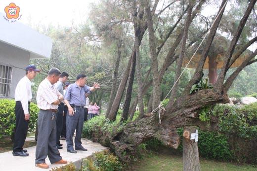 金門植物園區裡有一株樹齡逾一甲子的「無葉檉柳」(見圖,楊水詠攝),在金門鮮少見到的防風林樹種。多年前,在一次的風災中,這株「無葉檉柳」倒塌折斷,僅剩下樹頭的部份,仍展現堅強的生命力,又重新長出多株的枝幹,且枝葉茂密,林務所老員工昨日見到這株「無葉檉柳」依舊存活下來,內心無比的高興。 據載,「無葉檉柳」,別名叫作檉柳、西河柳、觀音柳。它的特徵為常綠灌木或小喬木,小枝細柔圓筒形;其外形酷似木麻黃,接合狀,每節長約0.1cm。 「無葉檉柳」葉極退化,成抱莖鞘狀,僅具一齒。圓錐花序,頂生,白至淡粉紅色,花瓣花萼5枚,花盤10裂。蒴果長約0.4cm,具多粒種子,種子頂端具毛叢。 「無葉檉柳」生態分佈在原產非洲北部、東部及亞洲西部。喜高溫氣候。春、夏季為花期。繁殖栽培以扦插或高壓法繁殖,但以扦插為主,春季為適期。土質不拘,以排水良好土壤為宜,日照需充足。成株極耐旱,但幼株生長需水較多。 「無葉檉柳」植株性耐旱、耐鹼、抗風,可為濱海及農地之防風林樹種。其成株枝葉柔細,下垂似柳,別具風格。