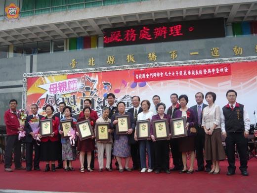 「想起故鄉心愛的人,感情用這厚,才知影痴情是第一憨的人」、「感恩的心,感謝命運,花開花落,我一樣會珍惜」:::,在「金門王」唱紅的︿流浪到淡水﹀,也在︿感恩的心﹀等一首接著一首的歌曲演奏中,一場屬於金門旅台遊子與母親的感恩音樂會,昨日在板橋溫馨登場,儘管雨勢不歇,仍吸引了近千人捧場,母親節的氣氛,愛到最高點;大會外一章,「現代神捕‧嘉惠鄉親」,洪俊義上台接受千人掌聲禮敬,也感動全場。 由台北縣金門同鄉會及該會板橋服務處處長、金門籍台北縣議員林國春服務處共同主辦的「九十七年模範母親表揚暨頒發大專獎學金感恩音樂會」,昨(星期六)下午二時起在板橋市台北縣第一運動場前廣場舉行,並藉大會表彰金門籍「現代神捕」洪俊義的俠義精神,原定有三千人參與,受夏季綿綿不絕的梅雨影響,人數沒達預期,但仍吸引了近千人參與,大會在永和市網溪國民小學管樂團、中和市自強國民小學管樂團、台北縣立海山高中管樂團,板橋市海山國小管樂團、板橋市後埔國小管樂團等五校聯合音樂饗宴帶動下,︿流浪到淡水﹀、︿母親真偉大﹀、︿Tico-Tico﹀、︿拯救世界﹀、︿望春風﹀、︿美麗星期天﹀:::一曲又一曲悠揚的歌聲,溫暖了出外人的母親節。 母親節感恩音樂會的重頭戲是頒發經由北縣同鄉各界推薦、選拔出的十位「九十七年模範母親」,十人中年紀最長、最受矚目的楊泮治,金沙山西人,九十六歲,育有五子一女,勤儉持家,任勞任怨,無怨無悔,始終保有金門農婦精神,且知足常樂,是她長壽的秘訣,但因昨天的天候不佳,致老母親未能出席表揚大會,由其子女李廷皆等代表出席;另外九位年齡都超過六十歲的母親是金沙青嶼人張陳蔭、金沙英坑人蕭明玉、金沙浦邊人吳何糖、金寧西浦頭人李羨、金沙東珩人吳分、金寧北山人李吳玉梨、金寧北山人董越續、金沙斗門人陳玉端、金沙高坑人陳琴;其中來自金沙浦邊的吳何糖自名單中出線後,同鄉才知道她原來是金門縣長李炷烽的岳母、縣長夫人吳麗鳳的母親,吳何糖辛苦地從金門到台灣,把吳家箴、吳麗鳳等一群子女拉拔長大投身教育工作,女兒吳麗鳳相夫教子,在背後默默支持夫婿李炷烽從政、為金門作出貢獻,吳何糖獲模範母親,親自出場,也成了昨日大會的焦點,由台北縣金門同鄉會理事長黃獻平、台北縣立委林德福及林鴻池、台北縣議員林國春等人共同致贈獎牌;另二位來自金寧鄉的模範母親七十二歲的李吳玉梨、七十一歲的董越續,由吳厝嫁南山的李吳玉梨,撫育出包括經營科技公司事業卓然有成的李綿鎮等三男二女,古崗嫁北山的董越續與夫婿李金汀以經營麵線雜貨起家,撫育二男二女,長子世迎為金寧麵線公司負責人、次子世堅自創公司,均事業有成,李吳玉梨、董越續獲北縣模範母親也同時獲中華民國雙鯉公共事務協會、金門旅台李氏宗親會今年的模範母親表揚,並於昨晚六時三十分在板橋市銀鳳樓餐廳由理事長李國贊、副理事長李增通設宴款待。 台北縣金門同鄉會在表揚模範母親外,也頒發九十五學年下學期大專獎學金得主,計有研究所二名(各獲六千元)─台灣科技大學吳倩銀、李根漢;大學七名(各獲五千元):台北大學趙百筠、中興大學蔡緯毅、銘傳大學吳佳蓁、世新大學陳興耀、高雄醫學院楊子萱、中國醫藥大學白亦浩、亞東技術學院陳政宇;專科一名(獲四千元)─耕莘護專王姿霓。 「九十七年模範母親表揚暨頒發大專獎學金感恩音樂會」的最後壓軸出現了令人意想不到的感人場面──「現代神捕」洪俊義忽然現身,上台接受台北縣金門同鄉會頒贈一面印有「現代神捕‧嘉惠鄉親」的紀念牌,出生於烈嶼湖下村的新莊警分局偵查隊長洪俊義維護社會治安、屢破大案,四月下旬再度以五天時間偵破發生在新莊市的金門葉婦遭封喉命案,且在破案後照顧葉婦留下三年內連遭喪父失母之痛、尚就學中的一對苦情姐妹花─小馨與小彤,以義父、義女相待,洪俊義的故事感動了許多人,同鄉會頒贈「現代神捕‧嘉惠鄉親」獎牌、接受千人掌聲,在︿感恩的心﹀歌聲飄揚裡,成了昨天母親節表揚感恩音樂會另一動人的畫面。