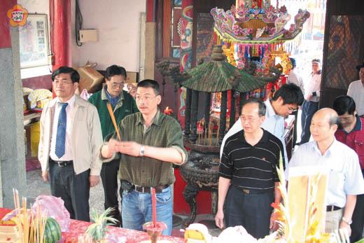 昨農曆三月廿三日為一年一度的媽祖聖誕,各地供奉媽祖的廟宇先後展開作醮或繞境巡安等酬神活動,縣長李炷烽昨日專程前往金門天后宮、料羅順濟宮等廟宇拈香為地方祈福,並致獻爐敬金,祈求合境平安,風調雨順。 地區許多廟宇都成為地方民眾的信仰中心,尤其是供奉媽祖的廟宇,在媽祖聖誕前夕及當天紛紛展開各項作醮慶典及媽祖遶境巡安等慶祝活動,信眾前往拈香祈福,鎮日廟內香煙繚繞,顯見媽祖在民間信仰深得人心,也有的廟宇特請來歌仔戲團演戲酬神,增添廟慶的熱鬧氣氛。 縣長李炷烽昨日上午九時許在民政局長洪國正、機要秘書許加發陪同下前往位於水試所旁的金門天后宮,向天上聖母上香為金門祈福,受到金門天后宮媽祖會會長吳素蘭及理監事與會員的熱誠歡迎。 李炷烽等人遵循古禮向媽祖娘娘誠敬上香、獻花等儀式,虔誠地祈求神明護佑地方平安、風調雨順。 隨後李縣長一行也前往料羅順濟宮、官澳龍鳳宮上香祝禱,受到宮廟管理委員會長老的熱烈歡迎,他虔誠地向神明上香行禮,敬獻爐敬,祈願金門合境平安。 金門天后宮媽祖於二十五日(農曆二十日)下午與蘇府千歲聯合巡安遶境金城鎮市區,並從前天起連續兩天做平安醮,慶賀媽祖聖誕千秋,天后宮周遭洋溢著慶典喜悅熱鬧的氣氛,二天來亦湧入大批虔誠信眾前往拜拜祈求媽祖保祐,顯見媽祖在民間深得人心。