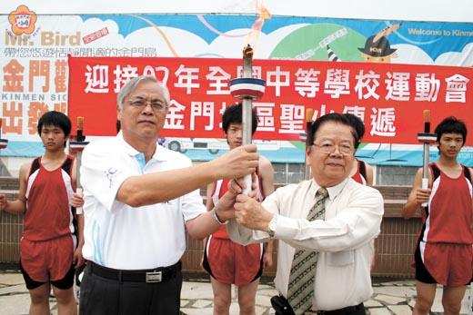 97年全國中等學校運動會聖火,昨日由南投縣副縣長陳志清率領聖火組護送到金門進行全島的傳遞,傳達全中運將於二十六日在南投縣開幕的喜訊。 全中運聖火是由南投縣副縣長陳志清率領聖火組於中午從台中搭機飛抵金門,展開外島傳遞行程。 金門縣副縣長楊忠全帶領金寧中小學學生組成的聖火隊,下午二時在金門航空站前廣場迎接聖火,楊忠全由陳志清手中接下聖火,交給聖火隊展開全島繞行。金門縣政府教育局主任督學陳金文、課長許能麗以及金寧中小學校長許維民、主任許瑞芬、和教師周清曜也到場為聖火隊打氣。 金門縣副縣長楊忠全並且祝賀南投縣主辦全中運盛會,圓滿成功。 金寧中小學學生組成的聖火隊在前導車的引領下,展開繞行大金門四個鄉鎮的行程,其中,行經到金寧鄉時,還受到金寧鄉長李文俊率領鄉公所祕書傅仰鑫、社會課長蔡世舜等人的歡迎。李文俊也祝福金門代表隊選手在全中運的各項競賽,有好的成績表現。 今年全中運,將於二十六日在南投縣開幕,金門縣的國立金門高級農工職業學校、金城國中和金寧中小學三所學校,聯合組成十七人代表隊,將由縣府教育局主任督學陳金文率領,參加田徑和跆拳項目比賽。