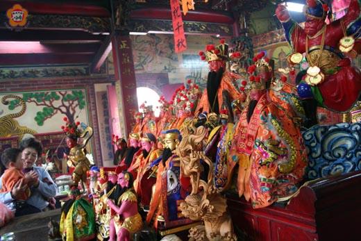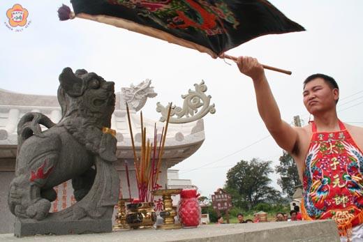 沙美石獅鼎足立,一黃二灰三金睛;或踏日月或執劍,臨風顧盼護昇平。沙美萬安堂昨天舉辦安鎮石獅爺的儀式;遶境隊伍巡行到「五柱」、「樹腳」、「西甲」等三地,在石獅爺前請神祝聖。 沙美境內有三尊石獅爺,一尊在「五柱」,一尊在「樹腳」,一尊在「西甲」。「五柱」的風獅爺主體是鮮黃色的;鬚眉及卷鬃是青色的,祂右腳踩紅日,左腳踏皎月,歪著頭看人;是一尊造型可愛的石獅爺。 「樹腳」的風獅爺看起較古,五官及肢體的輪廓和紋路不深;祂前腳捧著「令」印,後腳蹲踞,轉頭向右。表情似笑,非笑,略帶神祕。 「西甲」的石獅是重新雕過的,紋理細緻。獅身是石頭的原色-灰色,但眼塗金睛,口含金珠,胸綴金鈴,右腳捧金印,左腳持金劍,臉看右前。 石獅爺有位於屋頂的,有座落於村口的;有直立的,有蹲踞的;有雄的,也有雌的。石獅爺又名「風獅爺」,因為在金門間信仰中,祂具有鎮風煞的功能。不過,石獅爺不僅有鎮風煞的功能,傳說祂還有鎮壓厲鬼或防止妖魔作祟的祭煞功能;有剋制蟻害的功能;還有鎮水箭、鎮路煞的作用;不僅如此,祂還能衛護風水或破解村落犯沖。以沙美「樹腳」石獅爺而言,祭煞功能較為顯著。 農曆三月十六日、三月十七日是沙美萬安堂上半年的醮慶;不同於往年,今年多了安鎮石獅爺的儀式。 安鎮隊伍包括保生大帝、林王爺、李王爺、蘇王爺、太子元帥的輦轎,還有吳真人、孫真人、林王爺、蘇王爺、太子元帥等神明的乩童;另有穿著長袍馬褂的鄉老張泗平、張水恭,還有隨香的善男信女。 萬安堂的保生大帝有兩尊,一為吳真人,一為孫真人;太子元帥即為別處所稱的「三太子」。 據萬安堂管理委員會主任委員張雲盛表示,蘇王爺的降乩之後,中途離開,借乩給薛王爺。 薛王爺經由神譯,傳達了如下的意旨:「吾乃薛王,蘇王有事不能回廟。多謝諸眾,今為諸神慶祝聖誕,安鎮石獅爺;玉皇降旨,祥雲照臨;今後作醮,由道長請石獅爺神入廟參與醮事。」 萬安堂上半年的醮慶,主要是為了酬答眾神,這是地方民俗,也是慣例;今年多加了安鎮石獅,則是為了與人方便。原來,行政院新聞局要求委製節目的單位,要把風獅爺「安座」儀式拍攝成紀錄片。製作單位求助於萬安堂;萬安堂管理委員會向「保生大帝-孫真人」請示後,獲得應允,並由太子元帥領銜,在石獅爺安鎮儀式中施法。 張雲盛表示,根據神明的指示,沙美三尊石獅爺都是萬安堂所屬的神明;在萬安堂醮慶時,都要請三尊石獅爺參與;此外,三尊石獅爺都要以農曆四月初二為春秋日,由各「角頭」犒軍。 不過,「五柱」的居民提出疑問:以往每年農曆十二月九日都會拜石獅爺;如此一來,是不是要改期?又或是一年拜兩次? 道長吳明福則表示,石獅爺一直被奉做神明,在萬安堂醮慶時,都會請石獅爺接受祭祀,過去一向如此。 昨天的石獅爺安鎮儀式是於「送天公」儀式之後舉行;儀隊由萬安堂出發,路過張氏宗祠,經五柱、樹腳、西甲,回到萬安堂。遶境結束後,太子元帥藉由乩示,要信眾到石獅爺前「化符」。化符之後,安鎮的儀式就算是大功告成了。