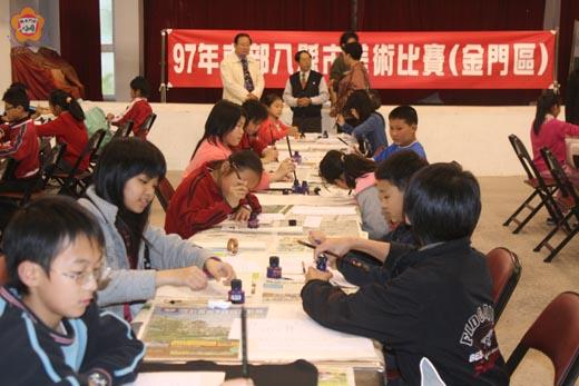 國立台南社會教育館九十七年南部八縣市美術比賽,金門縣昨同步在開瑄國小舉辦,首日進行書法類比賽,計有一百三十人報名參加。水墨、水彩類比賽,今(三十)日上午九時起,分別在瓊林登場,並配合推出「逗陣來瓊林作客」活動,盛況可期。 南部八縣市美術賽,金門縣由開瑄國小承辦;昨日率先登場的是書法類比賽,分成國小中年級組、高年級組、國中組、高中職組及社會組,有來自全縣各級學校一百三十人參賽,與其他七縣市參賽者角逐各組獎項,爭取榮譽。 縣府教育局主任督學陳金文也到場視察,並鼓勵參賽人員,拿出最好的實力,寫出最佳的書法作品,代表金門地區參賽,為金門爭取榮譽。在比賽時,個個屏氣凝神,落筆揮毫,顯示出自己的最佳實力,也是最好的作品。 水彩類比賽,今日上午九時登場,計五百七十人報名參加,分為社會組、高中職組、國中組、國小高年級組、中年級組、低年級組。水墨類,有四十二人報名,將在今日下午一時三十分舉辦,也是分為社會組、高中職組、國中組、國小高年級組、中年級組、低年級組及幼稚園組。 配合南部八縣市美術比賽的舉辦,金湖鎮瓊林里公所與開瑄國小今日合辦「逗陣來瓊林作客」活動,目的在結合社區與學校共同辦理,鼓勵社區居民一起做主人,歡迎其他社區民眾來瓊林作客,增加瓊林里觀光人口。同時,也拓展文化產業,增進民眾與學童對瓊林聚落人文的認識與活動參與。 「逗陣來瓊林作客」活動將在今(三十)日上午九時至十二時舉辦,活動內容有: 一、藝文活動:辦理南部八縣市暨金門區美術賽,包含書法、寫生(水彩及水墨畫)比賽,由開瑄國小負責。書法比賽場地在開瑄國小,寫生場地在瓊林里公所。 二、親子活動:跳蚤市場義賣與二手書捐贈或交換活動,由開瑄國小家長志工社負責。閱讀角,由開瑄國小家長志工社負責。 三、美食坊:由開瑄國小家長委員會暨家長志工社負責。 四、環保活動:由現場民眾與社區居民共同負責清潔維護(規劃資源回收筒、廁所與垃圾處理)。 該活動的參與對象,藝文活動由各報名參賽人員。至於親子活動由跳蚤市場義賣與二手書捐贈或交換活動:參賽人員之家長、外賓或小朋友。閱讀角,參賽人員之家長及非比賽小朋友。美食坊,參賽人員之家長、外賓或小朋友。