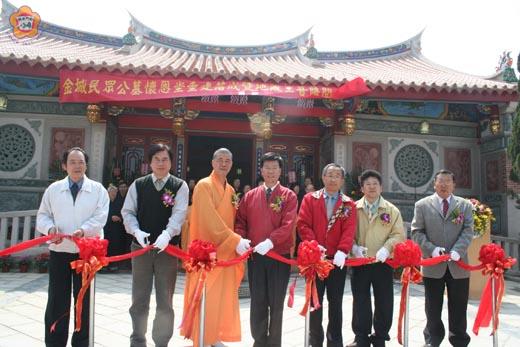 清明掃墓即將到來,金城民眾公墓「懷恩堂」重建落成,昨日由縣長李炷烽主持剪綵啟用,李縣長希望大家能懷德感恩、飲水思源,讓祖先安寧有所,庇祐子孫平安。 金城民眾公墓闢建於1954年,為金門五座民眾公墓中歷史最久、最具規模,塋葬二萬多人,其中,原有祭祀堂年久失修,金門縣殯葬管理所編列新臺幣一千三百多萬元於去年四月動土重建,於日前重建落成,並由縣長李炷烽題名為「懷恩堂」。 「懷恩堂」重建落成的啟用剪綵暨地藏王菩薩開光典禮,於昨日上午十時三十分舉行,縣長李炷烽偕同金門佛教會理事長釋性海法師、縣府主任秘書盧志輝、民政局長洪國正、金寧鄉公所秘書傅仰鑫、金寧鄉民代表會主席李正騰、殯葬管理所所長楊誠友等剪綵,及上香祭拜。縣府局室主管許乃權、翁正義、許鴻志、李秀荷、黃景舜、李再杭、李錫回、金寧鄉民代表陳成勇、村長許明吉、許績用、學校校長許維民、李仁木、王添泉以及佛教會蓮友在場觀禮。李縣長肯定民政局、殯葬管理所督促承包商執行該工程的效率,順利趕在清明節前完工啟用,並配合公墓整體環境的美化和建設,讓該墓園呈現公墓公園化,不會讓人感覺是個陰森森的墳場,提供緬懷追思先人英靈的好處所。 李縣長表示,祭祀堂取名「懷恩堂」,意思是指懷德感恩,金門五十多年沒有亂葬問題,感念過去金防部司令官兼戰地政務委員會主委闢建公墓的遠見,才能讓金門的環境能有今日的局面。他也說,殯葬管理所每一年都編有預算經費來鼓勵獎助鄉親將以前無法安葬在金城公墓的先人墳墓,遷葬到金城公墓,或是完善的納骨塔,地區的佛教團體也配合節慶來舉辦追思法會,會讓先人的英靈獲得更好的尊嚴。 李縣長也表示,未來還是會持續的推動墓園建設和公園化,務期做的更好,他也希望大家能飲水思源,讓祖先安寧有所,庇祐子孫平安。剪綵啟用典禮前,性海法師主持為地藏王菩薩開光儀式,並率領三十多位蓮友誦經祈福,場面莊嚴肅穆、充滿法喜。 殯葬管理所所長楊誠友表示,「懷恩堂」是採閩南傳統建築型式,外形莊嚴樸實,室內面積近一百七十五平方公尺,供奉白玉地藏王菩薩,大堂兩側則安置無主或單身榮民的神主牌位。 楊誠友說,祭祀堂的重建,是為了促使後輩感懷先人德澤,並革除傳統公墓陰森的印象,走向公墓公園化,讓人們接受生老病死只是自然的現象,死亡則是必然的階段,也促使後輩心存感恩先人德澤,讓人生的最後旅途能夠走得莊嚴。 楊誠友也表示,金城公墓牌樓前右側原本泥土路面,為便於民眾塋葬及清明掃墓需要,併該工程施作長165M、寬4M連鎖磚道路。同時,在清明掃墓期間,墓園管理室也提供有掃墓工具和茶水,來服務鄉親。