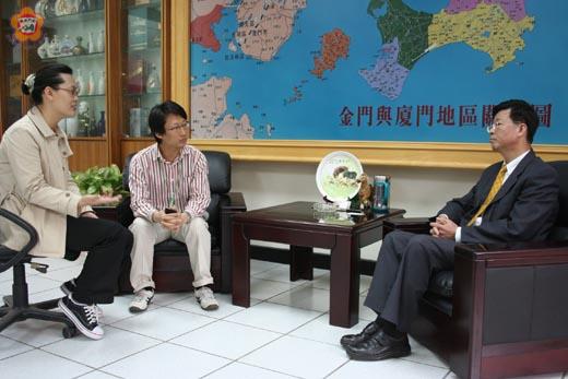 韓國KBS電視台「ASIA TODAY」節目製作人羅沅植等人,昨日到縣府專訪縣長李炷烽。李炷烽強調,現在兩岸都已改變,不能再以過去的成見看待大陸,兩岸「合則兩利,分則兩害」。 韓國KBS電視台「ASIA TODAY」節目製作人羅沅植、攝影李景植、翻譯柳鍾芝三人,昨日上午由縣府新聞課長傅仰土陪同,前往縣府拜會並專訪縣長李炷烽。 談及金廈小三通,李炷烽表示,金廈小三通今年已進入第八年,進出人次,由第一年的二萬人到去年的七十二萬五千人,成長相當快,提供國人進出大陸方便、省時、省力、省錢的途徑,他相信以後如果對象大幅開放,台灣到大陸的人數中,起碼有一半會選擇經由小三通。 對於這次總統大選的結果,民進黨大敗,李炷烽認為,此結果反映出:一是經濟蕭條,人民反鎖國;二是百姓希望安定,大多數人都反台獨;三是政治人物要重廉潔,民眾希望反貪腐。 大陸鎮壓西藏,金門會不會發生同樣的命運?對於該問題,李炷烽說,西藏問題的屬性與台灣不同,金門與廈門同文同種,只是因國共對峙,這五十年來才短暫分離,小三通後,又恢復昔日往來關係。李炷烽強調,現在兩岸都已改變,不能再以過去的成見看待大陸,兩岸是「合則兩利,分則兩害」。對於直航後對金門可能造成的影響,李炷烽表示,兩岸直航三通主要是促進經濟發展,當兩岸關係更良好時,大陸來的客人會更甚於以往,未來金門的前途在大陸,如果開放大陸人可來金自由行,金門的發展將無限。