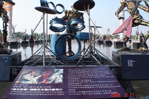 繼「翰墨緣|泉州、香港、佛羅里達州、台北、金門書法聯展」後,「金門民俗風情展」復於福建省泉州市的中國閩台緣博物館登場,金門藝文接續在大陸泉州展出,不僅讓當地民眾對金門文化藝術發展蓬勃留下深刻印象,也對集合金門藝文與觀光產業,將產品文化化的作法,給予好評。 「翰墨緣|泉州、香港、佛羅里達州、台北、金門書法聯展」係於新春期間在福建省泉州市的中國閩台緣博物館展出,是項書法聯展由泉州市書法家協會、香港福建書畫研究會、佛羅里達州中華書畫學會、台灣中國藝術協會、金門縣書法學會主辦,泉州市豐澤區委、區政府協辦,參與展出的書畫家來自大陸泉州、香港、美國佛羅里達州、台北、金門各地,共展出一百七十多件作品,篆、隸、楷、行、草各體兼備,吸引許多大陸民眾前往欣賞。 帶團前往參展的金門縣書法學會理事長陳添財表示,金門地區參與展出的書畫家包括:陳添財、王阿豪、吳鼎仁、張水團、楊清國、孫國粹、鄭賀文、洪明燦、洪啟義、洪松柏、楊誠國、張奇才、羅順隆、陳昆乾、黃鳳雲、王俊凱、薛振傳、張清忠、張國英、陳安全、吳國泰、唐敏達、李鴻德、陳聖騏等人。 「翰墨緣|泉州、香港、佛羅里達州、台北、金門書法聯展」後,金門縣書法學會又參與接續登場的「金門民俗風情展」,以書畫藝術和大陸泉州進行交流。 「金門民俗風情展」由中國閩台緣博物館、金門縣政府、金門縣吳鼎信工作室主辦,協辦的包括金門縣文化局、金門縣美術學會、金門縣攝影學會、金門縣書法學會、金門縣陶藝學會、金酒公司,該展覽集合金門書法、美術、陶藝、鋼雕、旅遊資訊、出版品和高粱酒產業,自新春期間展至三月二十日。 其中,矗立在閩台緣博物館廣場中,四十件由吳鼎信創作的大型的鋼雕,最引人注目,這些以金門「烽火歲月」做為主題呈現的鋼雕作品,都是吳鼎信七年來的創作精選。吳鼎信的作品係置放在廣場中一個寬二十公尺、長一百公尺,水深十五公分、總面積約二千平方公尺的水池上,讓許多到場參觀的大陸遊客倍感新鮮與震撼。 展出的鋼雕作品中,最小高度一百五十公分,最大高度三百六十公分,總重量含包裝共四千二百公斤,體積五十立方米,堪稱是歷年金門赴大陸最大型的兩岸藝術交流展。 擔任泉州市閩台緣博物館擔任主任的粘秋生,二○○六年係「陶瓷之鄉」福建德化縣副縣長,當年在金門陶藝學會(理事長為吳鼎信)邀約下,曾率團來金與金門陶瓷廠進行交流,因為在莒光樓參觀時,看到吳鼎信的鋼雕作品,大為驚豔,經由他的大力邀請,成就這次鋼雕展出的美事。 吳鼎信的哥哥、也是地區書畫名家吳鼎仁表示,弟弟吳鼎信原本專注於陶藝創作,製作風獅爺及各種陶藝產品十多年,七年前接觸鋼雕後,從此不可自拔,改投入鋼雕創作,除了在廈門設立工作室外,並積極於大陸舉辦鋼雕個展。未來還計畫於廈門市中山路人行步道區展出。 吳鼎仁指出,吳鼎信之所以會踏入鋼雕創作,其實與家庭背景也不無關係,因為父親就是從事五金加工,家族也有親戚開設鐵工廠,耳濡目染下,種下了這一因緣。 吳鼎仁認為,鋼雕創作設計相當不易,不但需要腦力,還要有體力,而鋼雕拼裝過程更是辛苦,強光傷眼,熱度傷身,身心負荷非一般人能體會,對於弟弟苦學多年有成,他感到很安慰。 吳鼎仁說,雖然目前大陸地區也有藝術家從事相關的雕刻、鋼雕技藝,但都屬小件式,像吳鼎信這樣大件的創作還很少見,他除了給予鼓勵外,也建議吳鼎信創作更大件的鋼雕作品,震撼與感人度將更強烈。