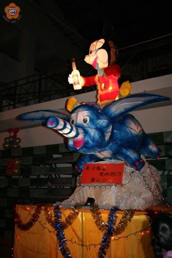「九十七年元宵節花燈展」日昨進行花燈的評選作業,結果由金酒公司、中正國小、金門陶瓷廠、金城鎮公所與金西守備隊的花燈作品獲得評審青睞,並獲得特優獎的最高殊榮。 文化局表示,今年共有五百多件作品參展,其中國小學生參展相當踴躍,另外各鄉鎮公所與軍方各旅單位都有作品參展,花燈件數之多,讓人看了目不暇給。 為了慎重起見,文化局此次特別邀請包括:陳添財、黃國泰、楊文斌等人擔任評審委員,並於日昨進行花燈的評選作業。 經過多方評比,特優獎由金酒公司的「米奇報喜.飛向國際」、中正國小的「鼠不盡的好運」、金門陶瓷廠的「鼠財運來」、金城鎮公所的「飛黃騰達金鼠年」與金西守備隊的「鼠年行大運」奪得。 其他獎項尚有:優選:金湖國小梁嘉茹、金沙鎮公所、開瑄國小、金門地檢署、金門國家公園管理處;佳作:烈嶼鄉公所、金門縣農業試驗所、砲兵群混砲營、金東守備隊、賢庵國小垵湖分校、防空營三連、金門縣養護工程所。 入選的單位包括有:金城國中、金湖國小周俊傑、中正國小李奕、中正國小許茵茵、中正國小 林書瀚、中正國小李彥妤、王思建、黃婷琪、許芝菱、王綺旋、古城國小 蔡其豪、古城國小邵瑜斌、金湖國小吳淑涵、金湖國小呂欣榮。 金門縣歡慶元宵節燈會活動,於二十一日在縣立體育館舉行,並於當日元宵節傍晚六時三十分,由縣長李炷烽等人主持點燈儀式後展開。 金門縣政府為配合元宵傳統節慶,與弘揚固有民俗文化及傳統技藝,並增進年節喜氣熱鬧氣氛,落實文化立縣宗旨,及為增進青少年對傳統技藝文化之認識及鑑賞力,並提昇縣民文化生活品質,以達到文化紮根之目的,所舉辦的歡度九十七年元宵節活動。其中,特優獎各頒獎金特優獎新台幣五千元;優選獎各頒獎金特優獎新台幣四千元;佳作獎各頒獎金特優獎新台幣三千元;入選者頒新台幣五百元獎勵;參展者則各頒感謝狀乙幀。