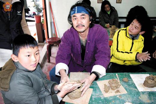 親子樂「陶陶」! 金門縣政府社會局為增進親子關係、推動捏陶教育,刻正於浯州陶藝坊舉辦為期七週的「金門縣社區親子捏陶樂」活動,在「風伯的傳人」王明宗指導下,大人小孩共享「樂陶陶」的假期。 社會局表示,是項活動原訂每周六下午二至五時在浯州陶藝坊展開,由素有「風伯的傳人」美譽的風獅爺藝品創作人王明宗擔任講師。昨日因故延至周日舉行,不過仍吸引不少事先報名的大小朋友前往參加。社會局希望透過該活動,推廣陶藝基礎教育,並增進親子關係。 昨日活動中,晨光教養院的院童們也在老師帶隊下,前往捏陶,在王明宗耐心指導下,院童及參與的小朋友們開心玩泥巴、捏泥條,然後依照個人想像力,做成杯子、筆筒等物品,經風乾後,就可進行燒製、彩繪,完成成品。 王明宗指出,以前小時候,到處都可以玩泥巴,但現在的小朋友比較沒有機會接近泥巴,更無法享受玩泥樂趣,藉由捏陶活動,不僅可以推廣捏陶文化、落實美學基礎教育,小朋友還可以名正言順玩陶土、泥巴。 王明宗說,陶土因為可塑性高,用於手捏相當適合。捏陶時,要特別注意土的性質以及可塑性,土質的硬度與軟度要適中,土條的捏成有技巧,手的溫度高低,會影響泥條捏製順當與否。太乾或太濕都不恰當,以捏製茶杯而言,土質太乾不易黏上,茶杯的把手接觸處要相當留意,才不會斷掉。 現年四十六歲的王明宗,因將地區風獅爺藝術商品化而知名,被媒體稱為「風伯的傳人」。民國六十九年王明宗復興美工畢業後,因專攻雕塑,前往鶯歌學習陶藝。民國七十年進入金門宏玻陶瓷廠,設計出知名的金龍陶瓷。民國七十三年離開宏玻陶瓷廠,改開廣告社,七十八年到台灣擔任報社美編,於民國八十一年返金,與黃金郎在泗湖村開設陶瓷廠,民國八十三年,王明宗將廠址遷至泗湖村口現址,成立浯州陶藝坊,不斷研發設計出許多各具特色的金門風獅爺,有手拿令旗的,象徵招財;也有拿竹筆的,取其加冠晉爵;更有拿彩球的,表示好彩頭,為了保有金門特色,王明宗採用金門紅土為原料,希望凸顯金門紅磚瓦的傳統味道。 王明宗在他的「浯州陶藝坊」裡,還築了一座燒製風獅爺的「柴窯」,王明宗表示,窯燒時,木柴產生的落灰,落在陶瓷品表面,會使陶瓷作品色澤溫潤多變,形成不同的釉色,所以柴窯燒製出的風獅爺,質感渾厚,就像出土的兵馬俑一樣,古味十足。 除了風獅爺,王明宗也接續製作唐三彩馬,為此他還買了幼馬,做為製作唐三彩馬的參考。而因為溜馬試馬,民國八十六年王明宗發生意外,由馬背上摔下,緊急後送台灣醫治,因為出現神蹟,王明宗得以甦醒,為了報恩,他特別於民國八十七年在金寧設立廣玄宮還願。 另外,民國九十一年,王明宗結合陶藝多角化經營,在模範街打造茶藝館「戀戀紅樓」,一圓舊夢,店中的「毛澤東奶茶」,成為兩岸觀光客到店的必點飲品,王明宗也在風獅爺創作外,再造奶茶傳奇。