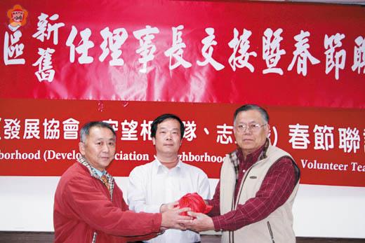 金城鎮南門社區發展協會新、舊任理事長交接典禮暨所屬會員新春聯誼餐會昨日在國慶飯店舉行,蔡錦駒功成身退,由李永金接下理事長重任,李永金感謝歷任理監事的辛苦耕耘及全體社區居民的努力打拚,讓會務日益茁壯,接下理事長一職,他表示這是一種責任及壓力的加重,更重要是社區的「後勤支援單位」,他們是社區的精神支柱,如果沒有他們的贊助,社區就沒有力量,沒力去打拚,因而往後要請社區大力支持,彼此勉勵切磋,一起來打拚,讓社區的業務更蓬勃發展。 這項原、新任理事長交接典禮暨所屬會員新春聯誼餐會於昨日晚間七時假金城鎮國慶飯店舉行,交接典禮由該社區常務監事許秋霖主持監交,包括有金門縣議會議長謝宜璋、縣議員李誠智、縣府社會局局長許乃權、社會局課長李廣榮、國民黨金門縣黨部主委江士良、金城鎮公所秘書黃耿銘、金城鎮代會主席陳天成、金城警察所所長陳必勇、南門里長楊耀芸、南門巡守隊隊長吳火發、南門志工隊隊長陳大隆及歷任理監事、社區志工里民一百多人到場觀禮,表達祝賀,大家齊聚一堂聯絡情誼,現場氣氛熱絡溫馨。 典禮在社區常務監事許秋霖監交下,卸任理事長蔡錦駒將印信交予新任理事長李永金,在來賓及理監事、社區志工、里民的掌聲中,新任理事長李永金接任後表示,今後除了更加竭盡心力為社區服務外,更希望有更多的社區民眾參與發展協會所舉辦的活動,為社區爭取更多的福利,讓社區的發展更加蓬勃。 縣議會議長謝宜璋也向大家拜年,願鼠年帶來好運,祝福鄉親有「鼠」不完的如意,「鼠」不完的吉祥,「鼠」不完的好康,各與會貴賓亦相互致詞勉勵、祝賀,慶祝餐會溫馨熱鬧。