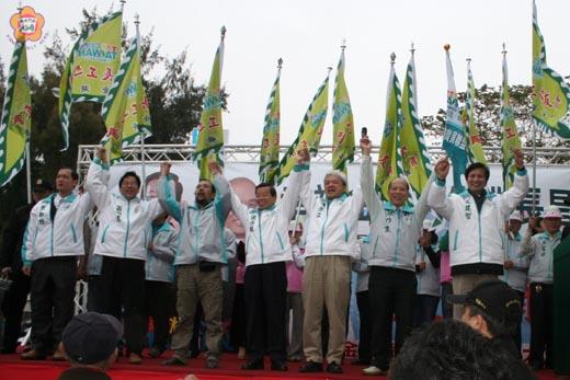 民進黨總統候選人謝長廷金門競選總部昨日正式成立,由金門縣黨部主委陳滄江擔任主任委員、副主委為前福建省政府秘書長翁明志等人擔任,昨日並由抵金拜票的總統候選人謝長廷授旗給金門各後援會長,期盼結合黨員與幹部的努力,能在總統大選在金門開出超過五千張的亮麗得票數。 謝長廷昨日下午跨海來金參與金門競選總部成立大會,並授戰旗給金門競選總部主委陳滄江,及長工之友會各分會會長、台灣寶貝金門姊妹會各分會會長,大家一起高呼當選,現場氣勢相當熱鬧。 民進黨金門縣黨部指出,謝長廷金門競選總部由縣黨部主委陳滄江擔任主任委員,副主任委員翁明志(前福建省政府秘書長與縣黨部主委,現任全國黨代表)、陳作生(前縣黨部主委)、吳增允(前縣黨部評召)陳昭南(現任縣黨部評召)、總幹事許永面、副總幹事歐陽彥森、楊財祥、執行總幹事熊知行、執行副總幹事歐陽金中::等。 長工之友會各分會會長為:金城分會許健全、金寧分會蔡富雄、金沙分會張閩政、金湖分會陳炳焜、烈嶼分會張智育、金門謝氏宗親會謝慶閣、金門新頭社區發展協會陳天仁、金門青年軍分會黃景麗、金門金蘭分會王碧珍、金門寶貝分會李玉葉、金門勞工分會吳增允、金門碼頭工人分會洪海水、金門向上分會邱杞方、金門太武分會楊川兒、金門浯江分會歐陽彥椿。 台灣寶貝金門姊妹會各分會長有:金門金蘭分會黃景麗、金門寶貝分會李玉葉、金門媽咪分會翁麗旋。