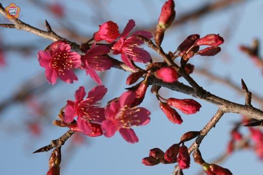 春寒料峭,繁花含苞待放,有些人遠赴日本北海道、京都或台灣陽明山賞櫻。開瑄國小家長及小朋友不必遠求,就在校門中庭兩棵山櫻花(見圖)已然盛開,迎接春天的來到! 寒流從除夕來拜年,大家每天都感受到冷颼颼的低溫天氣;惟獨嫣紅小櫻花,在枝頭上,朵朵燦爛綻放迎人。春季一月到二月份,各地開始陸續進入櫻花季,因分佈地點的各種環境條件不同,開花的時間也不太一樣,一般來說低海拔與南部的地區較早,山櫻花是每年最早開花的品種。 開瑄幼稚園的小朋友,在老師帶領下,為小櫻花繫上紅彩帶,祈求今年鼠來寶開運吉祥;由學校老師製作的吉祥鼠來寶花燈,依著山櫻花,寓意好兆頭,行大運。