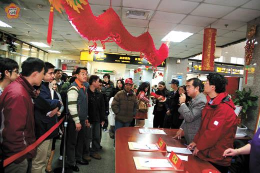 昨日是春節連續假期的最後一天,尚義機場一大早還是湧進搭機人潮,數百名事前沒有訂到機位的旅客在尚義機場大排長龍的候補,在天公的作美下,遠東、立榮、復興、以及華信四家航空公司的班機都能順利成行,遠東和立榮也於晚間各加開一班金北線班機來疏運候補的旅客,讓所有候補的旅客都「有機可乘」。一天下來,四家航空公司共飛了五十一班,疏運了五千三百多位返台的旅客。 由於春節連續假期到昨日結束,返鄉的鄉親必須返台重回工作崗位,學校也將於今日開課,因此許多訂不到機位的返鄉旅客,早到機場候補機位,大批候補旅客在機場等候機位,讓尚義機場大廳人滿為患。金門航空站的聯合補位單一窗口,讓登記補位的旅客能按照秩序依序來補位。 春節過後台金航線是以疏運收假返台的旅客以及中轉大陸的台商,這兩天來,台金各航線都熱滾滾,返台的人潮,尤以返鄉過年的金門鄉親居多,大夥大包小包的行李攜回台灣,雖然是大年初五,還是有年節的氣氛。 大批的人潮各返回工作崗位,所幸在天公的作美下,北金、中金、嘉金、南金以及高金等航線都能順利成行,可說是班班客滿。到了下午還是有二百多位等不到機位的候補旅客,焦急的苦等,好在立榮於晚間六時三十分加開一班北金線班機;遠東則於晚間九時十五分也再加開一班班機,兩班臨時加開的班機,來疏運候補的旅客,也讓所有候補的旅客都「有機可乘」,順利回到台灣。 金門航空站表示,大年初四和初五兩天,可說是年後春運的高潮,兩天,四家航空公司疏運的人潮,約各五千多人,昨晚的最後一班班機,是復興晚間十時的北金線班機,預計未來兩天的人潮會慢慢紓緩。 記者許加泰/金城報導 今年的農曆春節連續假期至昨日結束,金門和廈門小三通疏運的水頭碼頭湧現人潮,台商前進大陸回到工作崗位,縣籍民眾從大陸收假返鄉,一進一出疏運旅客達三千多人,顯示小三通為進出兩岸既經濟又便利的捷徑。 隨著年假的結束,金廈小三通的春運又出現人潮,根據金門港務處統計資料,金廈航線共有二十班次,金泉航線為四班次,全天疏運旅客達三千零四十七人左右。其中前往大陸旅客有一千七百三十五名旅客,主要是返回中國各地工作崗位的台商及眷屬,帶著大包小件的行李經金門中轉返回工作地。入境金門的旅客共一千三百一十二人,絕大多數為春節期間到大陸旅遊、探親的縣籍旅客,相較去年的返鄉人潮較少,主要是受到大陸雪災以及今年氣候寒冷的因素,年節到大陸旅遊和探親的人潮也相對減少。 昨天與大陸廈門、泉州石井港客船對開,由於是春節連續假期最後一天,從廈門開到金門的客船,送來春節期間到大陸旅遊、探親的縣籍旅客,水頭碼頭下午出現一波波台灣趕搭客機到金門,再中轉到廈門的台商和眷屬。 金門港務處表示,金廈小三通春節後疏運到二月十七日止,除了台灣、金門兩地的旅遊探親團外,還包括陸續返回中國大陸各地工作崗位的台商及眷屬,港務處一定會全力做好疏運工作,為旅客提供安全、順暢的服務。金廈航線小三通春運,每日航行單向十航班,往返二十航班。金泉航線小三通春運,天候正常往返四航次。