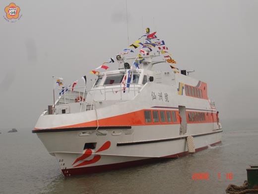 過新年,搭新船。行政院離島建設基金補助、金門縣政府購置的「仙洲號」新交通船,預訂今(五)日起正式加入大、小金門航線旅客輸運行列;金門車船處歡迎鄉親來搭乘,體驗「仙洲號」新交通船的快捷、平穩、舒適感。 金門車船處為配合鄉親返金過年需要,已自本(二)月一日起至二月十日止,每日增加九宮至水頭下午六時三十分一航次;水頭至九宮下午七時一航次,以疏運來往旅客的海上交通服務。 於上(一)月十日舉行首航典禮的新交通船「仙洲號」,車船處表示,將於今(五)日起正式加入大、小金門航線旅客輸運行列,以紓解大小金門交通旅運的需求,於春節前後提供海上安全、便捷的離島交通服務。經多年籌備新購的「仙洲號」新交通船,全長約三十公尺,一百八十五噸、可載客一百八十二人,以及一輛汽車、十輛機車。「仙洲號」新交通船,並配有雙舵,由二組柴油主機分別驅動二組高性能螺槳,可承受每年季節風期間八級風浪下安全航行的要求。 公車處表示,新交通船「仙洲號」,係是為改善離島交通,由離島建設基金補助新台幣八千萬元、金門縣政府自籌九百餘萬元,中央和地方合力建造的全新交通船。「仙洲號」自今日起正式加入營運行列之後,將為大、小金海上交通運輸寫下新的一頁。 改善離島交通,一直是縣政重點工作之一。金門縣長李炷烽於上月十日新交通船「仙洲號」的首航典禮,李縣長就指出,改善離島交通是縣府努力的方向,但再好的船也會受制天氣因素;因此,除了建造新船外,下一階段希望建造大橋,開車也能來往小金門,相信只要努力一定會達成目標。 公車處表示,大小金門航線公營交通船,繼「太武號」、「浯江號」、「富國號」之後,「仙洲號」為第四艘。目前,一天有五十二班船,輸運往返大小金門的旅客。「仙洲號」加入營運,將可提供春節期間,大小金門優質的海上交通服務。