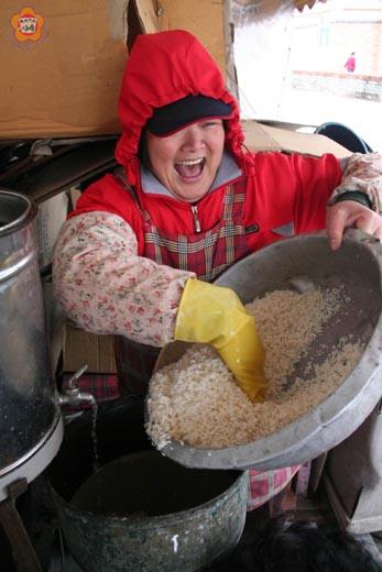 糯米磨出白漿汁,鼠年將到炊黍糕;敬天饗神拜祖先,祈求新歲事事高!昨天是農曆丁卯豬年的十二月二十五日,再過幾天就是戊子鼠年了;沙美的復興街上,有一些居民頂著寒風排隊,等著要輾米。輾米的目的就是為了做年糕。 年糕又稱「黍糕」,原料要用糯米、糖和麵粉。年復一年,沙美的居民,還是習慣自己買了糯米,準備了米漿袋和桶、盆等容器,排隊等著倩人輾米。因為,有些人覺得若是用現成的糯米粉,做出來的傳統年糕會少了熟悉的年味。 專門輾米的機器看起來已經是幾十年的老骨董,但是比起用石磨磨米漿,卻又省事不少。機器的第二代主人王素枝把糯米倒入漏斗狀的容器中,漏斗上的水龍頭則滴滴答答,瀝下水珠。一珠珠的水,一粒粒的米,通過了輾米機的齒刀,就變成了純白的米漿,緩緩下注到米漿袋中,直到滿盈;純白的米汁很美,可以帶給人一種視覺享受。 農曆十二月二十五日,是排隊輾米的高潮;王素枝表示,她聽其他來輾米的長輩們說:廿五炊粿,不生霉垢!還有:日下曬粿,可以貯久! 王素枝帶著疑問的口吻說:年糕若曬太陽,不是會裂開嗎?一位阿婆說:咱們只是「刷」一下,難道真的曬到裂?聽起來,老一輩的人好像是用天然的紅紫外線當做殺菌光來「掃瞄」年糕。 由於排隊的人不少,大家又只是讓桶、盆排隊,人則錯雜散立;王素枝稍微不慎,錯拿了一盆,馬上被一位阿婆制止:「瀝洗滴灰否?」(你是花了眼嗎?) 米汁下注時,有些人還要用手試一試流出的粒子夠不夠細;王素枝覺得夠細,但有些阿婆、阿嬸卻不以為然,只好調整機器;對於這些老主顧的「專業」要求,她必須照辦,畢竟炊年糕這種一年一度的大事,要積多年的功夫才知道怎麼做才算好,而且也要以客為尊嘛! 用輾米機為人輾一斤糯米,收費是五元,今年並沒有調漲。有一個人建議她可以小漲一元,因為天氣很冷,錢很難賺;不過,這只是一個人的主意,可不能代表大眾的心聲! 排在後面的一位阿伯,也開玩笑說出小小的抗議:是不是因為我們戴著某某立委參選人的帽子,就得排後面? 沙美居民炊年糕要用糯米、砂糖、麵粉,還得添加香蕉油;不過,有一位阿嬸卻有了新發明,她不添加香蕉油,而是改用天然的橘子皮。阿嬸說,天然柑皮的香味,讓年糕的氣味變得更好! 這位阿嬸今年是用八斤糯米配半斤柑皮。柑皮已經先碎解,混在糯米裡頭去輾。糯米拌柑皮一起輾成漿之後,流出的漿汁就不是純白的了,帶了點橘黃。八斤半的桔米漿還要與五斤的砂糖和三斤的麵粉和勻,倒入「鐵箍」,再放蒸籠;大約要炊上一炷香的時間才大功告成。阿嬸說,八十斤的糯米,大概可以做成十幾個年糕。 「年三十夜的年糕-你有我也有!」這是一句俏皮話,意思是家家有,人人有!沒什麼稀奇,反過來也可以說,年糕確實是過中國年時,家家戶戶不可少的食品。 有關年糕的俏皮話還有許多,例如:年糕掉進石灰坑-不可收拾。阿二炒年糕-自作聰明卻費力不討好。兔子吃年糕-悶了口。賣年糕的回家-一切切都完了。王八吃年糕-鐵(貼)了心。 吃年糕的由來,有一種說法是因為人們怕灶君上天說壞話,就用年糕粘住灶君的嘴。 還有一種說法是為了紀念伍子胥。伍子胥是春秋時代的楚國人,投奔了吳國。他輔佐吳王夫差成為一方之雄,但遭到離間而被賜死。死前,他預見吳國有難,早已預備糯米磚於城下;後來,靠著米磚存活的人們,每年都會壓製城磚狀的年糕來紀念他。