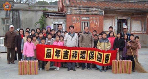 為配合全國同步展開『國家清潔週』清理環境活動,金城鎮公所規劃一系列的環境衛生維護計畫,賢庵國小昨日配合辦理「鼠年吉祥環保迎春」打掃活動,由校長董國正率領師生五十餘人走入社區投入環境維護工作,鎮長蔡輝詩特別攜帶餐盒到現場慰問該校師生的辛勞,感謝該校能結合社區辦理「鼠年吉祥環保迎春」打掃活動,讓鄉親及返鄉子弟都能擁有一個清新亮麗的新年。 金城鎮公所為使過年期間有一個清新的環境,規劃一系列的環境衛生維護計畫,並結合全縣國家清潔週活動,鼓勵各機關學校走入社區,參與社區環境維護,除能促進社區認識與參與外,並能創造優質的生活環境。 鎮長蔡輝詩表示,今年的國家清潔週期間自一月卅日至二月五日展開,鎮公所將於今(廿六)日上午八時卅分假鎮公所前廣場辦理誓師活動,隨即分赴各里進行環境維護,蔡輝詩除請各機關、學校自行維護內部的環境衛生外並依環保署「清淨家園全民運動計畫」認養周遭五十公尺範圍內的環境衛生,共同創造優質的生活環境。