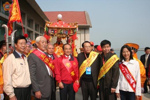 中國大陸福建省福州「八閩人祖」閩王王審知金身暨宗親文化交流訪問團,昨天由團長王大盛帶領六十多人首度小三通抵達金門會香交流,受到立法院長王金平、縣長李炷烽及金門王氏族人盛大迎駕,藉此加強兩岸宗務交流,建立良好宗誼,以達敬祖尊宗,宏揚祖德,為兩岸宗族文化交流再添佳話。 王審知是在五代時期在福建建立閩國,採取保境安民政策,努力發展經濟和文化教育,被譽為「開閩王」,他與其兄王潮、王審邽合稱「開閩三王」,宋太祖趙匡胤即位後,御謚王審知為「八閩人祖」,福建王氏族人燈號以「開閩第一」為榮。 應金門王氏宗親會邀請,福州王審知研究會組成「閩王王審知金身赴金門巡安暨宗親文化交流訪問團」六十多人,昨日上午護駕「閩王」金身由廈門搭乘「新集美號」客船直航金門,展開三天的會香活動。縣長李炷烽、王氏宗親會理事長王炳川、縣議員王再生及金門王氏族裔五百多人到水頭碼頭接駕,到金門輔選的王金平適逢盛會,親自為祖先抬轎,並且祭祖敬獻金牌,流露慎終追遠的情操。祭典中縣長李炷烽、金門縣王氏宗親會理事長王炳川也分別致贈金牌一面表敬意。立法院長王金平表示,「閩王」金身首度巡安金門,十分有意義,能夠接駕是難得的機緣,因為立委選戰到金門輔選國民黨吳成典而躬逢盛會,心裡很興奮。 福州「八閩人祖」閩王王審知金身暨宗親交流團團長、王審知研究會會長王大盛表示,「閩王」金身為一千多年來首次巡安金門,八日即在福州的蓮花山王審知墓前舉行隆重的起駕儀式,希望透過文化交流,拉近兩岸族人情感。 「閩王」金身在兩岸王氏族人護駕,首先巡安全縣首善之區的金城鎮市區,一路上鑼鼓喧天、鞭炮放不停,炒熱老街氣氛,比選戰還要熱鬧,金身駐蹕王氏大宗祠舉行祭祖安座大典,昨日下午縣長李炷烽帶領縣府團隊前往祭拜致意。 金門縣王氏宗親會理事長王炳川表示,「閩王」金身將巡安東沙、尚義、田浦、山后、營山、呂厝、后宅等十處王氏族人聚居聚落,並且將舉辦學術交流會,族人是以總動員辦喜事心情辦理巡安慶典,期盼藉此緬懷祖先、慎終追遠、庇祐國泰民安、兩岸和平。 王炳川指出,唐末中原大亂,河南省光州固始郡人,王審知兄弟帶領十八族姓之軍民人士輾轉流徙到福建,而建立了閩國,在我國正史中,當時的閩政府昌明(不與中原諸國爭雄,專心吏政。)文教發達(大興的門國子學與雪峰寺,中原高僧與文化人士紛紛來依。)經濟繁榮(拓展對外貿易,拓建泉州港,使成當時世界三大港之一的國際大港。)宋太祖趙匡胤即位後有鑑於閩王對福建全境之開發與貢獻無與倫比,且中原各大族姓同來首皆蒙恩顧,亦多為閩省各地人氏開基始祖,因此御諡王審知為「八閩人祖」之封號。自五代及於宋朝以來,福建各地皆立有王宮廟以崇祀王審知之功德,且有以王公之金身出巡福建各境,以護庇全閩之國泰民安並祈求風調雨順等之活動,一千餘年來「八閩人祖」「閩王」首次巡安到金門。