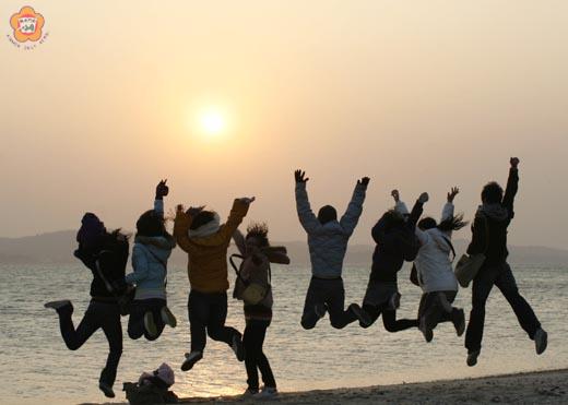 ︻中央社記者倪國炎金門三十一日電︼2007年台灣地區最後一道夕陽,今天出現在金門外島,曾是國共戰場的古寧頭海灘,天邊被霞光染成紅彩,而且歸巢倦鳥和唱晚漁舟伴著落日,讓老少追日族驚艷不已。 金門位於台灣海峽西岸,地理上的優勢,成為台灣、澎湖、金門、馬祖欣賞最後落日的景點,尤其是賞鳥區的西北角古寧頭慈堤,與對岸中國廈門相距僅一萬公尺,更是抓住夕陽的絕佳景點。 下午五時不到,慈堤賞鳥平台和海灘,即出現六十多名捕捉全台最後一道夕陽的追日族,其中,來自國立成功大學生命科學系四年級的八位同學最為興奮,目睹晚霞紅暈滿天的畫面,他們以讓人悸動、震撼來形容自己的心情。 成大楊姓女同學說,來到金門三日遊,最主要的目的是賞鳥,沒想到欣賞到鸕鶿群,一波波以人字形歸巢的盛況,意外趕上目睹台灣地區最後一道夕陽美景,這是「最最美麗的錯誤」,讓金門行更增添難忘回憶。 金門技術學院的學生,冒著冷氣團南下帶來的刺骨寒風,騎著機車趕到慈堤,面對著今年最後的落霞、歸巢鸕鶿群、和金烈水道上漁舟返航構成的美景,同學們禁不住雀躍,在揮別落日時,大聲高喊「新年快樂」。 除了年輕追日族外,老家在古寧頭的金門資深媒體人李福井,帶著結婚剛滿二十六年的愛妻邱英美,頂著寒風與青年朋友欣賞晚霞,兩人相依相偎漫步在夕陽下的海灘,可以說是只羨鴛鴦不羨仙的最佳寫照。