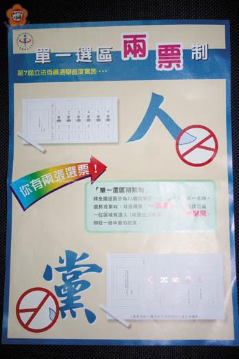 這次的立委選舉,採單一選區兩票制,將全國選區分為七十三個選舉區,每一選區應選單一名額,金門縣選委會特別提醒選民留意,投票時,可投兩票,一票選人,即投該選區一位區域候選人(或原住民候選人);另一票選黨,即投一個中意的政黨。 為加強宣導,縣府與金門縣選委會也發送大批「單一選區兩票制」海報給各鄉鎮、村里,希望讓更多地區選民瞭解新的投票方式,選出理想中的候選人與政黨。 根據選委會資料統計,金門縣至八月底止,共有六萬三千多位選舉人口,較上屆(四萬六千四百四十九人)增加一萬七千多人,不過,初步統計要到今(二十四)日後才會有較確切的數據。 金門縣第七屆立法委員選舉「六搶一」,候選人號次為:一號陳福海、二號李沃士、三號高絃騰(公民黨)、四號胡偉生、五號唐惠霈(民主進步黨)、六號吳成典(中國國民黨)。 另外,地區共有二百九十多位平地、山地原住民,將分別投票選出平地、山地原住民立委。 平地原住民立委候選人號次為:一號林正二、二號廖國棟、三號宋進財、四號陳秀惠、五號楊仁福。 山地原住民立委候選人號次則為:一號薛宜蓁、二號孔文吉、三號簡東明、四號侯金助、五號高金素梅、六號林春德、七號宋仁和。 至於各政黨號次,縣選委會表示,分別為:一、公民黨;二、制憲聯盟;三、台灣團結聯盟;四、第三社會黨;五、民主進步黨;六、新黨;七、綠黨;八、台灣農民黨;九、無黨團結聯盟;十、中國國民黨;十一、紅黨;十二、客家黨。