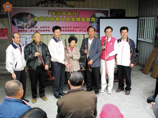 「樂齡向前行!」金門縣政府辦理『金門社區老人養生健身教育學習活動』,昨日在金城、金湖地區舉行四場次,今日將於金沙社區展開二場次,縣長李炷烽鼓勵老人們透過社區活動的參與及保健運動之傳達,學習簡易木球運動的技巧,讓社區老人在正確養生健身教育觀念和運動推展下,發揮「活到老、學到老」之良好運動精神,營造出健康快樂的銀髮族生活品質。 這項由教育部指導,縣府教育局、家庭教育中心主辦,國立金門技術學院、浯江老人會、忠孝新村、塔后社區發展協會協辦的活動,昨日分別於金城浯江老人會、塔后社區展開,縣長李炷烽、立委吳成典、教育局長李再杭均到場參與,各社區銀髮族的阿公阿嬤參加相當踴躍,以快樂、輕鬆的心情享受運動的樂趣,並不因稍有涼意而阻斷參與的熱情。 金門社區老人養生健身教育學習活動昨日分別在金城浯江老人會及塔后社區發展協會舉行,課程安排有室內養身健康教育專題講座,由國立體院教務長高俊雄主講「做個快樂健康的銀髮族」,室外健身運動木球教學暨趣味賽活動,則由金門技術學院學務長董燊指導木球打法,活動中縣長李炷烽並贈送老人會、社區多組木球器具,提供老人進行體育休閒學習活動。參與銀髮族非常熱絡,現場歡笑聲不斷,老人們共度健康歡樂的上午,共享充滿活力的運動嘉年華,讓承辦的家庭教育中心工作人員感到窩心。 金門社區老人養生健身教育學習活動昨日在金城浯江老人會及塔后社區發展協會展開,今日上午將於金沙忠孝新村活動中心及社區舉行二場次,期望藉此活動讓地區老人家走出戶外,做做有趣的運動,身心得到紓解,學習平衡、和諧的動作,也藉由團體活動,得到快樂。