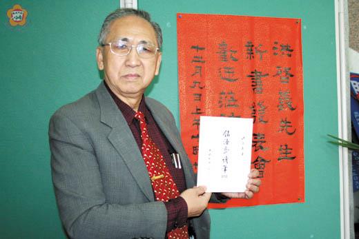 雅耽翰墨、性好寫作的縣籍名書法家洪啟義昨日在文化局舉辦銘浯齋續筆(四)新書發表會,台金地區藝文界人士到場參加,肯定他三年內出了五本書的努力成就。 這項新書發表會昨日上午十一時在文化局大廳舉行,文化局長李錫隆、及金門縣文史工作學會理事長許丕華、前理事長張火木(實踐大學副教授)、政治學者呂亞力(前台大教授)、元智大學劉阿榮院長、政大中山學術研究所所長李酉潭、台北科技大學周家華院長、族群與文化研究學會理事長洪泉湖教授、東吳大學謝政諭教授、洪啟義親朋好友、藝文界人士到場參加。 銘浯齋續筆(四)內容分為人物篇、古今中外雋語錄等,其中人物篇包括:台南南聖宮張將軍廟落成記、探索台南「南聖宮張將軍廟的奧秘、一代師僧釋惟誠法師、南海有幸藏忠骨緬懷完人吳稚暉|記述吳公治喪經過與海葬始末、張奇才撰(金門沙美萬安堂勸世八箴)||間述沙美辦理第一屆道教文化觀光節暨慶賀萬安堂三忠王聖誕活動經過、『兩及軒』遺作書寫彙篇」取齋名記憶恩師等。而古今中外雋語錄則是他體悟個中哲理,認為是普羅大眾的智慧結晶,不敢藏私、獻之君前的佳語錄。 洪啟義,字維之、號太武山人、別署銘浯齋主人,福建省金門縣金城鎮人,民國三十一年生,早年曾服務於金門縣政府,從事建設設計工作,七十二年調台北市松山區公所,並在民國八十五年於北市信義區公所退休,前後服務公職二十七年。他在民國七十三年投入書法大師謝宗安門下,至此始跨入書法宮牆,窺其堂奧。由於浸淫書法多年,力求精進,書法涵養已別有面貌,書法風格仍以傳統為主,力求樸實,從不以書法家自居,並力遵其先師謝宗安的訓示:「先紮實傳統根基,而後創新」。而為發揚書法國粹,遂以書法教學為志業,曾舉辦書法個展七次,作品甚獲先進前輩的肯定及喜愛者之收藏,每以書藝參加公益慈善義賣活動,愛心不落人後,著有聲譽。 時間就是生命!成年人作自己應該做的事(職場工作),老年人作自己喜歡(退休興趣)的事,洪啟義說,他已進入老年定義的年齡,當初不過想寫一冊「銘浯齋隨筆」來記錄一些生平事跡罷了,找一項屬於自己興趣而有意義的事來充實自己的生命,想不到銘浯齋續筆(四)已出版,也感謝長者與鄉親、好友的支持鼓勵。