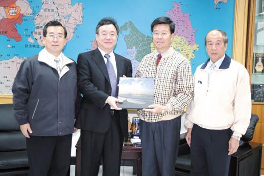 臺南市政府文化觀光局昨日組團來金考察古蹟、公共造產等業務,局長許耿修並帶來從未贈送過的「安平古堡」古蹟模型,贈送給姊妹市金門縣作紀念。 臺南市政府文化觀光局考察團一行四十一人,是由局長許耿修帶領,於昨日抵金展開古蹟、公共造產等業務考察。並受到金門縣文化局局長李錫隆、本報社長黃雅芬等熱烈歡迎。 而曾經在民國六十六年於金門服兵役的許耿修,一度在正氣中華報當過記者,對金門有深厚的情感和回憶。他指出,臺南市是全國二十五個縣市中,唯一在古蹟公共造產賺錢的縣市,並由早先的每個月有二千萬元盈餘,到今年每個月有八千萬元的收入。 考察團成員這次來金,昨日也前往金門國家公園管理處等地參觀、考察,大家用心參訪和勤作筆記,也覺得金門行一定可以收穫良多。