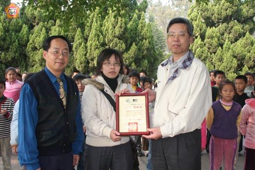 企業溫馨回饋!金湖鎮敬業機車行董事長楊肅清昨日贈送一批文具用品給開瑄國小學童,為了感謝楊肅清的熱心義舉,開瑄國小校長李錫南昨日特別邀請教育局督學陳清纓頒贈感謝狀予其女兒,對其慷慨助人,熱心學校教育的義舉,嘉惠學童表達感謝敬佩之意,也期許學子們學習楊肅清事業有成的回饋服務精神。