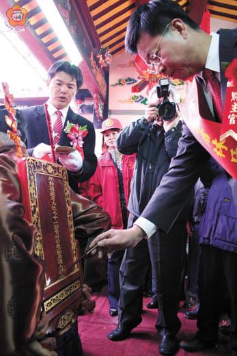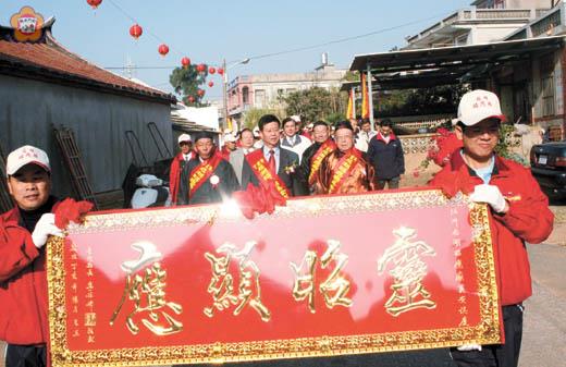 金寧鄉后湖昭應廟昨起一連舉行三天重建奠安慶典活動,縣長李炷烽、議長謝宜璋、金寧鄉長李文俊、代表會主席李正騰等均率員前往致敬,並進獻匾額及爐敬金表達祝賀,加上村民以辦喜慶的心情投入,村內是熱鬧非常,到處喜氣洋洋。 后湖昭應廟重建奠安廟慶活動昨日凌晨起鼓、掀樑之後,熱鬧展開一連三天的慶典活動,村民及許多在外工作的鄉親也返鄉參與,從上午八時起奠安委員會及村內長老並組成迎賓隊伍在入口處迎接前來參與慶典的各界來賓,顯示對慶典的重視。而村內外張燈結綵、沿途插滿慶賀旗幟,到處洋溢著喜氣。 昨上午九時許縣長李炷烽也率同副縣長楊忠全及縣府團隊主管前往道賀,受到奠安委員會及村民的熱情歡迎。李縣長遵循古禮致敬,並敬獻「靈昭顯應」大紅匾額,表達誠敬的祝賀之意。 上午九時三十分議長謝宜璋率同副議長許玉昭、議員林長耕及議會主秘張忠民與議會主管前往祝賀,依循古禮致敬,並進獻「保境佑民」的匾牌及爐敬金,也受到村民的熱情歡迎。 而率員前往敬拜、道賀的金寧鄉長李文俊也進獻「威靈顯赫」匾額,金寧鄉代會主席李正騰與代表陳成勇也敬獻「靈昭四海」匾額祝賀,表達對地方宗教信仰的尊敬。 而奠安活動也吸引不少旅外鄉親返鄉參加,村民也前往上香祈福,現場鞭炮聲、鑼鼓聲響徹雲霄,熱鬧非凡,也有不少遠嫁台灣或嫁到外鄉的古崗女兒回娘家前往宮內拜拜,據后湖耆老指出,依照舊例,家鄉的宮廟奠安,女兒要回娘家前往廟內燒金添緣,並攜帶「三百金」紙向宮廟換一把筷子,據傳以前嫁出去的女兒若沒能在奠安時回娘家前往宮內拜拜,必須等十年以後才能回娘家,不過,現在比較簡化,這些風俗已經非常少了! 廈門翔安民間戲曲學校高甲戲實驗戲團昨日演出傳統歷史劇博得滿堂彩,為后湖昭應廟奠安慶典掀起另一波的熱潮。今(一)日、明(二)日下午二時起、晚間七時起將推出傳統高甲大戲,希望對地方傳統戲曲充滿懷舊的同好們,可不要錯過了這難得的機會,相招來看戲。 昭應廟管理委員會主任委員許天生表示,后湖開莊四、五百年,昭應廟所供奉池王爺、六姓府、廣澤尊王等神明為村落守護神,係自大陸泉州分火而來,庇祐村民。昨起展開的奠安活動,從昨子夜十二時後起鼓、發奏掀樑、制煞戲,早晨五時起依序進行追龍、安龍、敬樑神、敬龍神、排粿粽,上午九時至十一時進行祭典,中午十二時慶宴,將持續進行三天的建醮。