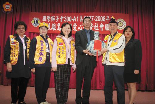 關懷離島愛心行!國際獅子會300A1區昨日在總監張呂章的率領下送愛心到金門,並在金門縣議會議長謝宜璋的見證下,分別捐贈給紅十字會金門縣支會、金門家扶中心與金門縣殘障福利協進會等單位各五萬元款項,張呂章強調,他們只是藉棉薄之力對金門的公益團體表達敬意,因為他們犧牲奉獻的精神更令人欽佩。昨日上午十時五十分,國際獅子會300A1區一行一百七十七人前往縣議會拜會,成員包括有總監張呂章、副總監姜寶珠、關懷離島委員會主席林祥文等人,而議長謝宜璋也帶領副議長許玉昭、主任秘書張忠民等議會團隊親切相迎,現場氣氛相當和諧。而金門獅子會的創會會長顏達仁、台北市民生獅子會前會長彭火興(與張呂章有同窗之誼)也到場與老朋友會晤相聚。 謝宜璋在致詞時表示,國際獅子會300A1區的這趟愛心行令人倍感窩心,獅友們所洋溢的熱情與關懷也都讓人相當感動,對於他們不遠千里而來的善行義舉,謝宜璋也表示欽佩;而在看到獅友們身上穿著的背心竟然有大大的國旗標誌,謝宜璋也有感而發的說,在看到這大大的國旗圖案,讓他也有股衝動,想加入300A1區。 張呂章則表示,竭誠歡迎謝議長加入他們獅友的行列,他說,金門是個特殊的島嶼,曾經經歷戰爭,而今走向和平,與其說他們此行是關懷,還不如說是學習,他說,金門的公益團體所付出的精神都是他們學習的榜樣,他們只是藉棉薄之力對金門的公益團體表達敬意。 許玉昭表示,國際獅子會300A1區連續幾年都到金門來表達愛心與關懷,只是每次的對象都不太相同,此次更在謝議長與她的聯繫爭取下,再度前抵金門傳達愛心,希望能有拋磚引玉之效,讓更多人共同來關懷公益團體。 昨日的捐贈典禮上,包括紅十字會金門縣支會由副會長周德、金門家扶中心的展愛隊副隊長李淑賢與金門縣殘障福利協進會理事長李錫盛等人都親自到場接受捐贈款項,並回贈紀念錦旗與感謝狀。
