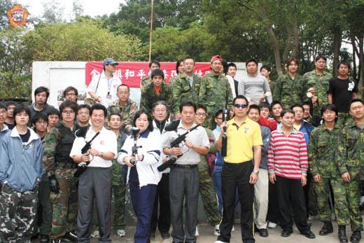 金城鎮公所主辦的「和平愛」軍事體驗營漆彈對抗賽,昨天在古坵營區登場,十四支隊伍報名組隊參加漆彈競賽,經激戰結果由金門岸巡總隊官兵化身的「中出58連發」隊,技高一籌,在叢林追擊戰中勇奪冠軍。 為期五場次的「和平愛」軍事體驗營活動昨晚在省府前廣場進行最後一場後圓滿落幕,讓許多年輕學子到場參與體驗充滿趣味的軍事之旅,度過一個軍事懷舊且別具意義的週末假期。 金城鎮公所主辦的軍事體驗營漆彈對抗賽於昨日上午十時在古坵營區舉行開幕典禮,開幕式的貴賓包括:金城鎮長蔡輝詩、金門縣漆彈運動委員會主任委員許玉昭、金門縣體育場場長許換生、金門技術學院學務長董燊等人,在正式比賽之前,鎮長蔡輝詩、金門縣漆彈運動委員會主任委員許玉昭等人還親自用漆彈射擊標靶,體驗漆彈遊戲。 整個賽程在金門縣漆彈運動委員會總幹事林本源教授指揮下進行,林本源首先講解漆彈比賽規則,比賽時間每場10分鐘為限、每人子彈數為50顆。每場比賽分為紅黃兩軍,帶至營區東西兩方,兩軍就定位,聞一聲哨聲比賽開始,聞兩聲哨聲(一長聲一短聲)比賽結束。比賽勝負由得分較高之隊伍獲勝,分數評分方式為─打中敵方之人員頭部得5分,打中身上防彈衣得4分,打中手腳得3分,其他部位得1分。參賽的隊員得戴上安全面罩和頭盔,使用的漆彈槍則模擬真槍,而被射中的隊員,身上則會有明顯的顏料標示,以此作為陣亡依據,比賽場地則模擬實際的戰場,參賽的同學們需要同心協力才能贏得比賽勝利。 昨日參與漆彈對抗賽共有十四支隊伍報名,每隊七人,以古坵營區叢林、碉堡、戰壕為戰場,分成紅、黃兩軍,以漆彈槍進行叢林戰。參賽隊伍大多是青年學生,穿梭在樹林內進行追擊,也有老自衛隊員展現「三行四進」翻滾、匍匐前進戰技,場面有如回到金門從前戰地時代。四個小時的比賽,畢竟還是現役軍人技高一籌,由金門岸巡總隊現役的翁明集、張偉洲、葉生文、吳建華、陳志偉等組成的「中出58連發」隊,以絕佳的戰術、射擊,拿下第一名,奪得新台幣三千元獎金,亞軍為「就是十樓」隊,獎金二千元。 金城鎮公所舉辦的軍事體驗營活動,最後一場昨晚在福建省政府廣場舉行進行最後一場後圓滿落幕,活動內容舉辦軍人鼓號樂隊踩街、勞軍演唱舞會、「單打雙不打煙火表演」及「戰地露天電影院─播放國內外戰爭電影」、「軍人塗鴉─提供營區牆壁,讓遊客體驗當兵時塗鴉」、「和平愛願望─將許願卡綁在偽裝網上」、「留念金門照相館─提供布景、軍裝供遊客拍照留念,每日前20名觀眾,現場並送4*6吋照片一張」、「下基地普測」、「漆彈定點射擊」、「蛙人操訓練體驗」等,提供民眾歡度充滿趣味、懷舊的軍事之旅。