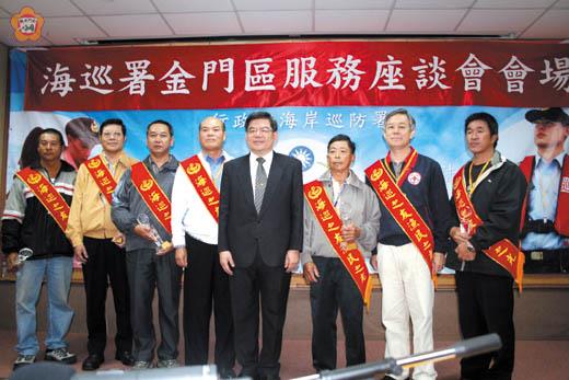 海巡署金門區座談會昨日舉行,會中並表揚協助救難保育有功人員陳水義等七位海巡之友,中部地區巡防局局長龔光宇強調,海巡署不僅是維護治安單位,更是漁民的守護神。 海巡署金門區座談會昨日上午九時三十分在金門縣文化局三樓會議室召開,由龔光宇主持,包括縣府建設局專員楊廷標、金門縣紅十字會總幹事許金象、金門區漁會理事長陳水義、地區民眾、漁民代表近百人參加。 會中,龔光宇頒獎表揚協助救難保育的海巡之友,計有金門區漁會理事長陳水義、常務監事吳安樂、總幹事陳天麟、金門縣紅十字會總幹事許金象、漁民陳吟銓、吳振誠、陳長鯽等七人受獎。 龔光宇表示,海巡署致力建立「全民海巡、活力海洋」新形象,過去大家認為海巡單位就是捉走私、偷渡,和漁民的關係就是進出港檢查,但是海巡署成立後,人民與政府越來越重視海洋發展,海巡署現在已經轉型成為以服務為導向,施政重心轉變為海上、岸際救難、海洋資源保護等,儼然成為漁民的海上守護神。 他指出,只要是漁民朋友有需要,撥打免費電話「一一八」,海巡單位就會全力來為大家服務。 陳水義表示,漁會是海巡、岸巡隊與漁民間的溝通橋樑,倘若他們在執法時與民眾有所誤解,需靠漁會出面來解釋;他也提到,對台灣而言大陸是敵國,但在金門由於小三通往來密切,大家也將大陸漁民視為朋友,希望海巡弟兄可以秉持地方特性來執法,因為法制不外乎人情,他也強調,倘若地區漁民有走私槍械等不法行徑,漁會也會秉持公義揭發檢舉。 座談會上,龔光宇率領金門海巡幹部與漁民代表進行面對面溝通,展現服務的誠意。 此外,海巡署並為漁民進行相關政令及工作宣導,包括:海巡業務、重要政令、預防犯罪、為民服務等。會場也展示多項先進的查緝裝備,展示海巡查緝不法的決心。