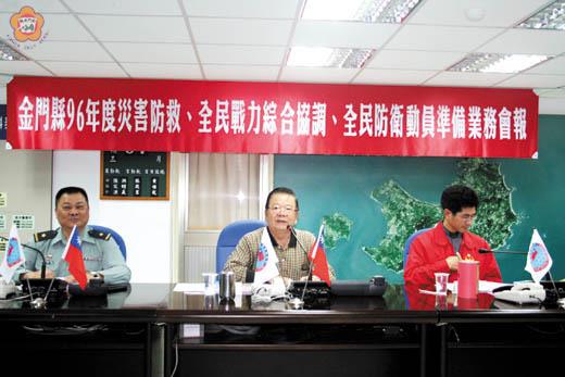 金門縣九十六年災害防救、全民戰力綜合協調、全民防衛動員準備業務三個會報,昨日假金門縣消防局召開第二次會議,經審議通過多項提案。副縣長楊忠全裁示各單位仍應遵照行政院災害防救委員會訪評結果,辦理訪評建議事項,並就強化三會報聯合運作,提昇緊急應變機制功效,達成共識。 金門縣全民戰力綜合協調、防衛動員準備業務、災害防救會報九十六年第二次定期會議,昨日下午二時三十分在金門縣消防局二樓會議室召開,由副縣長楊忠全主持,台閩地區全民戰力綜合協調會報徐材霖副參謀長抵金列席、中央駐金相關單位、金防部及金門縣政府暨所屬機關等,近五十人出列席參加。 會中,由消防局報告災害防救業務工作,民政局全民防衛動員準備業務作專題報告 ,消防局並就各單位提出災害防救提案討論,經審議通過提案包括:衛生局提案:請追認「金門縣生物病原災害防救計畫」案。環保局、建設局提案:下列災害應變中心作業要點(草案)暨標準作業程序(草案),業經承辦單位行文相關單位修正擬定,提請確認案。消防局提案:請追認金門縣重大爆炸災害防救標準作業程序(草案)。消防局提案:金門縣各類災害應變中心作業要點暨災害防救標準作業程序尚未訂定案。經決議:旱災、寒災之災害防救標準作業程序及災害防救應變中心作業要點已由建設局及工務局訂定。動物疫災災害應變中心作業要點已由建設局擬定草案,俟行文至各相關單位提供修正意見後再行發布。消防局提案:請確認97年度以後輪流辦理防災演習單位。決議97年度防災演習由建設局辦理動物疫災災害防災演習。工務局提案:金門縣水災災害防救標準作業程序(草案),決議:依建議修正內容辦理。消防局提案:增列內政部營建署金門國家公園管理處、交通部民用航空局金門航空站、交通部高雄港務局金門航政事務處為本縣災害防救單位暨風災災害應變中心一級開設進駐單位案。決議:上述單位在本縣災害應變中心一級開設之前,以通訊方式聯繫,如有必要,再通知其進駐。消防局提案:修正地區災害防救計畫中,有關各編各章「災後復原重建」主辦單位之確認。決議:視災害類別屬性不同,而有不同主辦單位。