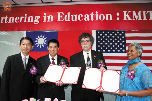 國立金門技術學院再創學術新猷!繼與姐妹學校美國西佛羅里達大學簽訂雙聯學制的學術合作關係後,昨日的校慶,校長李金振又與美國另一所姐妹學校西喬治亞大學(UWG)軒尼爾博士(Dr.William),代表兩校簽約建立學術合作關係,可提供金門地區學子、民眾學習更多元化、國際化的課程,也又一次帶動金門教育邁向國際化的新里程碑。 這項簽約儀式於昨日上午十時三十分舉行,包括,金門縣長李炷烽、前教育部次長范巽綠、前國立高雄應用科技大學校長黃廣志、國立高雄應用科技大學代理校長方俊雄、國立高雄大學主任秘書林順富、以及金門縣政府教育局長李再杭、金門紅十字會會長王水彰、金門高中校長蔡錦杉以及金技學院主管和教師在場觀禮。 軒尼爾博士帶來該校慶祝建校一百年的慶賀掛條,贈送予金門技術學院校長李金振,同時也轉達該校校長以及師生歡喜與姐妹校建立學術合作關係。李金振也回贈瓷器紀念品,感謝姐妹校的這一份情誼以及大力支持下,才促成該項合作關係。 在來賓的掌聲中,李金振和軒尼爾博士代表兩校簽約建立學術合作關係。李金振表示,金門技術學院與姊妹校美國西喬治亞大學,簽有國際合作協定,為擴大雙方合作基礎,特別藉校慶機會邀請該校教授William Schaniel, 及 Hema Ramanthan來訪,並進一步簽訂學生及教師交換計畫。他說,根據雙方簽訂的備忘錄,經甄選後參與兩校交換計畫的學生,只要在母校辦理註冊、繳費,即可至交換校就讀,並享有學費、食宿全免的優惠,雙方合作期間為三年,並逐年檢討雙方選送的學生數。 前教育部次長范巽綠指出,美國西喬治亞大學有一百零五年的校史,在全世界眾多的國家會選擇十歲,事實上只有四足歲的金門技術學院作為姐妹校,就表示肯定金門技術學院的辦學成效,也表示台灣在全世界教育舞台上的評比,是很好的教育國家。