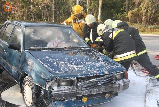 為提昇警義消同仁平時對災害搶救之熟悉度,以期在災害發生時能迅速抵達現場,保護民眾生命財產安全;又鑑於地區汽機車使用量逐年增加,車禍救護成為救護案件之大宗,金門縣消防局第二大隊金湖消防分隊昨辦理「車禍搶救」組合訓練,過程逼真,警義消搶救操作流程順暢,完美呈現車禍現場緊急救護工作。 金湖消防分隊表示,鑑於地區汽機車使用量逐年增加,且近期車禍案件頻傳,傷亡人數大幅增加,車禍救護頻率已為救護案件之大宗;為提升警義消同仁車禍事故傷患之搶救技能,特別辦理「車禍搶救」組合訓練,訂定本演練計畫,以期在災害發生時,將及時減少人命傷亡及財產之損失,將傷害降至最低。 金湖消防分隊昨日下午二時起假金湖鎮南雄圓環辦理「車禍搶救」組合訓練,現場搶救情境摸擬,有一車輛由新市開往陽明方向,於南雄路口失控翻滾高速衝撞圓環,車輛撞擊後導致引擎室起火燃燒,乘客一人摔飛出車外路面,駕駛受困車內待救,目擊者發現後通報119報案,請求派員到場搶救;消防局勤務指揮中心值勤員接獲報案電話,隨即派遣金湖消防分隊及金沙分隊出動人、車搶救,值班人員獲報後立即通知在隊警義消出勤及義消協勤。 昨日搶救摸擬現場,金湖分隊獲報後立即派遣人車裝備到場進行搶救,由金湖分隊長陳莒揚擔任初期指揮,依搶救車禍標準作業程序指揮調度進行搶救工作。 消防人員首先將飛出車外受傷的患者送往醫院急救;並出動泡沫水箱車一部,撲滅車輛撞擊後而引發的火勢;接著支援人車到達現場後,由初期指揮官指導調度,在車輛引擎室火勢獲得控制後,利用用破壞剪,將卡在駕駛座上的患者救出,送往醫院搶救,演練過程逼真。 南雄圓環為新市對外的重要道路之一,昨日演練現場十分逼真,煞有其事,也讓不少民眾開(騎車)經過時,好奇圍觀。 消防局第二大隊大隊長洪振和表示,昨日演練過程十分順利,警義消人員對於該車禍摸擬情狀十分瞭解,於抵達現場後經由初期指揮官調度指派,順利達成任務,搶救操作流暢。 洪振和也指出,車禍救護狀況不同,所以期望能透過車禍搶救演練,讓警消同仁及協勤的義消,熟練救災技能,以災害發生時能發揮最高的將搶救作業成效,讓民眾生命財產安全獲得保障。 金門縣消防局第二大隊金湖消防分隊,昨日假南雄圓環辦理「車禍搶救」組合訓練,過程逼真,會後也進行檢討會議,由所有與會人員就此次演練過程之優、缺提出檢討,並提出建議及改善事項,以讓警、義消熟悉車禍現場各項狀況之因應,提高搶救作業成效,將傷害減至最低。