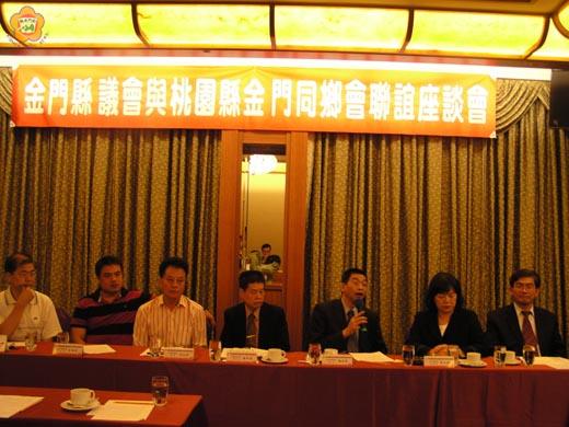 不止關心島內金門鄉親的心聲意見,也要心繫島外金門族群的家鄉情感;金門縣議會走出去了!繼與花蓮縣市金門同鄉會座談、交流後,昨日下午四時起,「金門縣議會與桃園縣金門同鄉聯誼座談會」,在中壢市「古華花園飯店」,金門縣議會與桃園縣金門同鄉會「兩會」舉行了場「鄉情高峰會」,雙邊就「各縣市金門同鄉建館構想與預算需求」、「旅行社返金門←→台灣客運海航作業」及「金門旅台同鄉會三節公關配酒案」等議題進行討論、意見交換,金門縣議會議長謝宜璋、副議長許玉昭及議員李沃士、李誠智及主秘張忠民等人針對旅外鄉親所提出的想法、意見,作了一次坦誠的溝通。結束了桃園行程後,今日下午四時,金門縣議會一行將移師台北,在國軍英雄館續與台北縣、市金門同鄉會、烈嶼公共事務協會、金門雙鯉公共事務協會作鄉訊、鄉情座談。金門縣議會議長謝宜璋偕同副議長許玉昭及議員等一行於昨(二十七)日拜會明年將邁入三十周年的桃園金門同鄉會,除了關懷鄉親在台生活外,縣議會並與同鄉會理監事、鄉親舉辦聯誼座談會,針對金門的諸多重大議題,向旅外鄉親們請益,共同為縣政獻策。 議長謝宜璋偕同副議長許玉昭、議員李沃士、李誠智、洪允典、主任秘書張忠民、議事組主任呂清富及會計室主任洪天然等一行十五人於昨日下午四時許假桃園中壢市古華花園飯店舉辦「金門縣議會與桃園金門縣同鄉會聯誼座談會」。旅居桃園金門鄉親有四萬人之多,楊榮煥理事長暨理監事三十餘人幾乎全員到齊,熱情相迎,會場鄉情洋溢,旅台鄉親關懷金門之心溢於言表。 議長謝宜璋於致詞時表示,上禮拜桃園金門同鄉會才來金門縣議會大家相聚,但今天金門縣議會專程來桃園拜訪,意義有所不同,除了表示兩會熱情互動之外,此次來訪主要是向各位鄉親請益,聽取鄉親對家鄉的期許與建言,做為議員問政的起跑點,期盼鄉親不吝指教。 桃園縣金門同鄉會理事長楊榮煥致辭時除表歡迎之意,並代表旅台鄉親提出下列討論議題: 案由A:為延伸縣政政令宣導,傳達鄉訊,服務鄉親,凝聚向心力,由各縣市同鄉會提出建館構想與預算需求,金門縣政府納列年度工作計畫內實施。 方案一:統籌建構:由金門縣政府編列預算統一建構,產權為金門縣政府所有。 方案二:購地自建:由金門縣政府編列建館,購地預算由縣市同鄉會自籌構建經費辦理之(產權分開」。 方案三:租地構建:由金門縣政府編列預算向地方縣政府租地構建。 案由B:往返金門←→台灣,客運海航作業,為考量鄉親經濟負擔,空航天候因素,應於春節及暑假期間各加開兩航次客運服務。 案由C:三節公關配酒案,請恢復60打數量,並逐次提高到100打,以提供同鄉幹部公關之用。 以上三案,因馬祖桃園同鄉會獲該縣政府及桃園縣政府支持,取得土地已完成會館興建,可為效法,建請議會審度權責,敦促縣政,鼎力促成,以利同鄉會凝聚鄉情擴大服務旅台鄉親之原本初衷。 針對以上三案,桃園鄉親提出諸多意見,謝議長、許副議長及諸位議員亦就各項問題本於議會立場,給予答覆。另外鄉親亦針對金門家鄉有關白酒開放對金酒之影響,縣府是否作好因應對策,以免影響財政以及如何提昇金門觀光產業,約束業者避免惡性競價,另增加觀光消費振興地方經濟提出許多建言,謝議長亦允諾將鄉親們的寶貴意見,除鄉親熱切關心之議題,邀集相關單位專案討論外並轉交縣府相關部門立即研究辦理。李沃士議員表示鄉親所提的許多問題,有些並非地方政府所能解決,所以他決定參選下屆立法委員選舉,盼能督促中央政府為金門做出更多建設。 會後雙方互贈紀念品並合影留念,接著兩會進行餐敘,彼此把酒言歡,互敘鄉情,為此次兩會聯誼座談會劃下完美的句點。