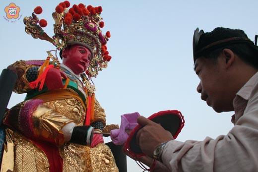 點眼知天機,點背受天命;點耳察人言,點舌覺感應!縣定古蹟「慈德宮」已經修護完成;慈德宮的眾神明,於昨天清晨五時在「鯉魚堀頭」開光點眼之後回鑾。 昨天清晨四點半,汶浦居民先齊聚黃氏家廟,再由此出發,前往沙中旁的「鯉魚堀頭」,為慈德宮的神像進行開光儀式。「鯉魚堀頭」是一處風水地,農曆九月十七(昨天;國曆十月二十七日),滿月的月華正射這個地方;日升月沈,旭日的光華,也正射這個地方。 慈德宮的儀隊前有宮旗,後有「了亞」(大鑼),接著是諸姓王爺的王爺旗;紅、黃、白、綠、黑等五色錦旗後面是載運眾神的四輪車,然後才是以境主神明為主的輦轎。 當儀隊在汶浦村郊整隊待發時,明月在上,星斗閃耀;人聲暫歇的空檔,白毛公雞獨唱,發出弓「嘎勾咕嗚」、「戈鉤箍武」的啼鳴。民間傳說,雞有五德,因此神像開光點眼時,要借用牠的冠上之血,取生氣,以通天竅。 位在金沙國中與榮光新村之間的「鯉魚堀頭」,是汶沙與汶水兩地廟宇為神像開光的地方。沙美萬安堂今年為三皇、五文昌、月老等神像開光時,是在靠近沙中側門的地方舉行,地點比較靠近東埔,時間為今年五月二日凌晨一點。慈德宮為眾神明舉行開光儀式的地方,比較靠近榮光新村,時間在昨天早上五時。根據民間的說法,兩地的龍脈,都是在這裡「落龍」(此據田浦泰山廟管理委員會主委陳榮華所言)。 慈德宮的壇務人員,在「鯉魚堀頭」用四塊八仙桌排成一排,所有的神明都背西面東。在開光儀式舉行之前,所有的神明都用紅紙蒙面;到了「鯉魚堀頭」才去掉蒙面。 根據︽慈德宮調查研究修護計畫︾,慈德宮的主神有:黃府大王爺黃偉、朱府二王爺朱文峰、黃府三王爺黃全南、朱府四王爺朱世清、白府五王爺白守爵;祂們五位是「結拜神」。黃偉是後水頭、後浦頭兩村的「祖佛」;在歷史人物中,他是明代金門的一位進士,有「品德完人」之稱;在民間信仰中,祂是汶浦的境主。 除了主神之外,慈德宮還有各種「分身神」、「配祀神」、「配偶神」、「挾祀神」、「隸祀神」,這些都是「屬神」。另外還有「同祀神」、「寄祀神」,這兩種都是「客神」。 慈德宮的「分身神」有:白髯的黃府大王爺(被奉為主神的黃府大王爺則是黑髯)、黃府三王爺、廣澤尊王、註生娘娘、呂仙祖、土地公。「配偶神」有「姑娘」,也就是「廣澤尊王夫人」。「配祀神」有旗牌將軍、名醫先生、蔡先生。「挾祀神」有:神馬、神丁。 「同祀神」有:地藏王、包公、蘇府王爺、邱府王爺、梁府王爺、秦府王爺、蔡府王爺、韓府王爺、侯府王爺、註生娘娘,恩主公、廣澤尊王。「寄祀神」有呂仙祖。 開光儀式結束之後,法師為神像「洗面」,然後由信眾簇擁眾神遊沙美街,遶汶浦境,請眾神回鑾,也就是回到慈德宮。等眾神安位之外,信眾們才把宮匾掛上整修完成,重新啟用的「慈德宮」,開始為期兩天(昨天和今天)的醮慶。