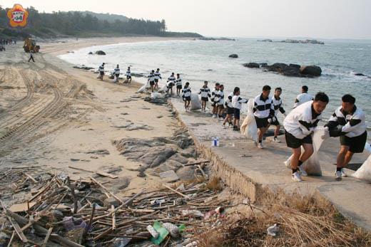 金沙各界昨天在青嶼海邊舉行淨灘活動,參加活動的軍民、男女、老少、師生,同心齊力,清除沙灘上的垃圾,希望還給大自然一張乾淨的臉。 這裡的風景雖美,可惜不斷被海漂垃圾玷污;金沙鎮公所昨天由鎮長陳昆第領銜,與軍民各界執行淨灘,希望恢復潔淨。 昨天參加活動的單位包括:金東旅、聯勤金門地區支援指揮部、金沙鎮民代表會、國家公園東區管理站、海巡署金門岸巡總隊(尚義)、財政部國有財產局台灣辦事處金馬分處、金沙民眾服務站、金沙國中、金沙國小、述美國小、金門縣婦女會金沙分會、婦聯青溪金沙支分會、金沙鎮後備軍人輔導中心、金沙鎮環保志工隊、金沙警察所。 在淨灘過程中,偶爾會聽到驚聲尖叫,因為死狗、死羊的屍體,實在很嚇人。