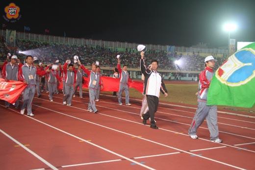 九十六年全國運動會昨日下午六時三十分在台南市立體育場揭開序幕,被安排在最先進場的金門縣代表隊,由縣長李炷烽率領選手及隊職員在縣旗引領下進場,受到全場觀眾的熱烈歡迎。包含教練、選手在內,本屆全運會金門代表隊計有三十位選手,將參與田徑、跆拳道、自由車、健美、保齡球、帆船、游泳等七項競技,預定廿五日閉幕。 為了與主辦單位暨姊妹縣市台南市道賀,縣長李炷烽昨日率隊前往參加全運會,受到大會高規格接待,台南市長許添財還親自來到盛會入口處迎接,展現最大的誠意。為了禮遇離島縣市,此次仍按照慣例安排金門、連江兩縣代表隊員優先進場,地區選手們與旅居台南的鄉親進場時,全場觀眾報以熱烈掌聲。李炷烽表示,此次特別邀請旅居台南的鄉親們與選手一起參加進場遊行,接受觀眾的歡呼,金門代表隊進場時特別手持「酒香半世紀、真情一輩子;請愛用金門高粱酒」布條,相當受到矚目,也成功為金酒公司打響廣告。 全運會開幕典禮於昨日下午六時三十分起展開,由台南市長許添財主持,包括總統陳水扁、行政院長張俊雄等貴賓也出席參與,今年大會以「全運在府城,全民RUN起來」為主題,開幕表演有府城各校組成的啦啦隊、甜心教主王心凌帶著吉祥物『James胖』遊行、還有以現代的台南為主題的舞蹈演出。此外,現場由二十五位美麗的城市小姐在會場拋送二百顆郭泓志簽名球給看台上的民眾,也為大會掀起第一波高潮。 全國運動會向來是國內規模最大、水準最高的運動盛會,更是所有體育人的盛事。今年,所有參賽項目共計有三十五項,參賽選手逼近萬人。除了高爾夫、現代五項以外,其餘三十三項都在臺南市舉行。 配合全運會,台南市政府也精心安排包括全國藝陣博覽會、全運會選手之夜、府城美食啤酒節等活動,炒熱整個全運會氣氛。