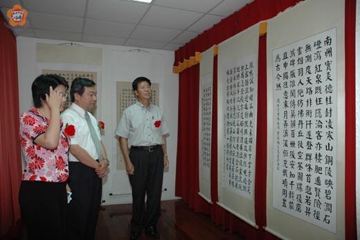 金門地區司法機關丁亥年書法年展,昨日假金門地方法院五樓禮堂開展,展期將至十月十一日止,此次計展出十二位司法人員研習書法成果,除了讓人見識司法人員多才多藝外,也使得一向剛性的司法殿堂,成為藝術的展場。 司法機關書法年展,昨日上午十時在司法大廈金門地方法院五樓禮堂揭幕,金門縣長李炷烽由金門地檢署檢察長張文政等陪同下參觀展覽,欣賞司法人員多才多藝的一面。其他到場參與者尚有:金門縣教育局長李再杭、文化局長李錫隆、金門縣警察局長林文全與金門監獄典獄長王文。 縣長李炷烽指出,金門地方法院書法社成立以來連續舉辦四次書法年展,展出的水準不斷提升,此次展出的品質令人嘆為觀止;他樂見司法書法藝術在金門開花結果。 李炷烽對於金門司法人員的書法水準表示讚美,更肯定法院不僅是打官司的地方,也是藝術的展場,對於社會教化有移風易俗的功能。 張文政也表示,金門文風鼎盛,不論是閩南建築、洋樓、宗祠都表現文化特色。而看了展覽後,更發現金門司法機關人才濟濟,司法人員也都多才多藝。希望透過辦理書法年展讓他們在平日練習的成果有一個展演的機會。 金門司法機關包括金門高分院、高分檢署、地方法院、地檢署、福建省調查處等,是在三年前成立書法社研習書法,這次是第四度舉辦年展,有十二位司法人員參展,展出五十幅作品。 金門司法機關書法展此次參展者包括:金門地檢署書記官長孫國粹、法警林邦俊、福建調查處組長蔡顯吉、金門監獄榮譽教誨師楊清國、金門地院主任陳芸芳、政風室主任張水團、書記官許永溪、陳炳偉及總務科同仁蔡阿明、楊忠洵、周志良、眷屬蔡流慶等十二人。 參展作品有古篆、金文、隸書、草書、行書、真書等字體,展現司法人員的多才多藝。 金門地區司法機關丁亥年書法年展,在司法大廈五樓禮堂展出,展期到十月二十一日,策辦的金門地方法院歡迎軍民參觀。