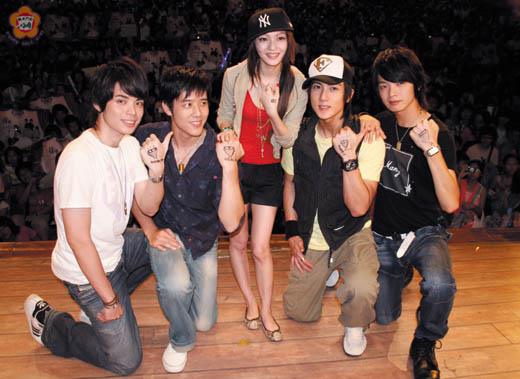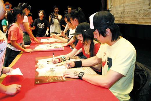 『公主小妹』偶像劇中的吳尊、張韶涵、辰亦儒、胡宇崴、利昂霖五位偶像昨日來金舉辦見面會造成轟動,二百張宣傳海報義賣造成搶購,並由偶像明星當場簽名,所得將由八大電視台全數捐贈給公益團體。 由於海報是由五位偶像親自簽名,把握難得近距離的接觸機會,有的粉絲甚至從昨日凌晨三點就到文化局演藝廳排隊,準備購買宣傳海報,據傳還一度因為排隊插隊的問題,引發口角,為使活動順利,名城電視特別請託警方派員到場維護交通與秩序,可見偶像明星在金門青少年粉絲心中的魅力。 據了解,此次到金門,許多台灣追星族也自費遠從台灣搭飛機隨同來金門捧場,當中還有香港籍、日本籍的粉絲,昨日上午當吳尊等人前往烈嶼參訪回祖籍地宗祠上香時,他們也尾隨前往烈嶼追星,也讓烈嶼的計程車大發利市。 昨日二百位排隊購得海報的幸運粉絲,也上台由五位年輕偶像明星分別在海報上簽名握手,能與心目中的偶像接觸,粉絲們雖然有些臉紅心跳,但卻是開心得很。