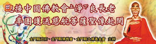 慈航菩薩聖像將於明(十四)日在台灣各寺廟長老與信眾的護送下,經由小三通中轉方式回到中國安奉,為了恭迎聖像過境,金門縣佛教會將動員地區全體信眾到機場護迎金身聖像,並於各鄉鎮備有專車接送,歡迎信眾多加利用,屆時踴躍到場同霑法喜。 金門縣佛教會表示,為了恭迎慈航菩薩聖像過境,他們特別訂製「迎接慈航菩薩聖像」的大型看板(15*4.9公尺),將於今日起懸掛在機場附近空地,讓地區信眾都知道這場盛事。 慈航菩薩聖像將於明(十四)日上午八時二十五分至十時許在台灣各地信眾護送下搭機抵達金門,屆時將請縣長李炷烽身披海青與信眾迎佛,九時五十分到達水頭碼頭安置聖像、香案,供信眾短暫瞻仰(約四十分鐘),預定搭乘十時五十分的船隻前往廈門。 為表達金門地區僧、信眾對全台灣第一尊肉身菩薩的恭敬,佛教會將在沿途要點插上佛教會旗,壯大聲勢,並發動金門地區全體信眾到機場與碼頭恭迎聖像,並向諸山長老獻花。 金門縣佛教會說,當日於各車站將備有專車,請信眾多加利用,分別是:(一)預備上午七時三十分,海印寺中型巴士由山外發車,搭載工作人員先到機場(二)沙美地區信眾請搭乘七時四十分公車到山外,與金湖信眾搭乘八時十分的專車到機場,並於九時五十分到達水頭碼頭。 (三)金城信眾請搭乘八時十分專車到機場,並於九時五十分到達水頭碼頭。 慈航法師是於一八九三年生於福建省建寧,十七歲於泰寧縣峨眉峰慶雲寺出家,曾就讀閩南佛學院,並於安徽、廣東、上海、江蘇、江西、湖北等地弘揚「人間佛法」及出訪南洋宣傳抗日,為仰光中國佛學會、新加坡星州佛學會、馬來西亞檳城菩提佛學院創始人,台灣佛學院、汐止彌勒內院主持。 慈航法師於一九五四年圓寂於汐止彌勒內院,以肉身不壞,成為台灣首尊肉身菩薩,人稱「慈航菩薩」,有一百二十萬字「慈航全集」遺世,目前台灣佛教界不少高僧大道為其弟子、學生。 此次台灣佛教界組成慈航菩薩聖像護送團二百五十多人,將由台灣的中國佛教會理事長淨良長老率領,十四日將護送慈航菩薩木雕聖像,台北搭機到金門,再換小三通班船到中國廈門,轉往福州、泰寧展開七天宗教交流。 根據規劃,慈航菩薩聖像十四日由金門上「陸」後,首先在廈門市南普陀寺舉行奉迎儀式,再轉往福州市,護送團十五日上午於福州開元寺舉辦兩岸和平發展祈福大法會,下午於福州大戲院舉辦慈航菩薩研討會,十七日於泰寧慶雲寺舉行慈航菩薩聖像安座開光典禮暨慶雲寺大雄寶殿奠基儀式,二十日護送團回到金門。